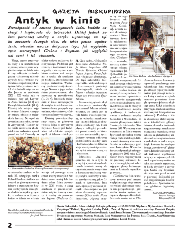 Antyk w kinie Starożytność od zawsze fascynowała ludzi, budziła zachwyt i inspirowała do twórczości. Dzisiaj jednak zakres potocznej wiedzy o antyku wyznaczają nie tylko znaczenia dawnych słów, ale także pewne wyobrażenia, wizualne wzorce dotyczące tego, jak wyglądało życie starożytnych Greków i Rzymian, jak wyglądali oni sami i ich otoczenie. Wizje, często artystyczne, były i są kształtowane w pewnej mierze przez oryginalne antyczne dzieła sztuki czy odkrycia archeologiczne - ale istotną rolę odgrywały tutaj również wyobrażenia współczesnych artystów, którzy za temat swoich dzieł obrali antyczne realia. Jeszcze na przełomie XIX i XX wieku byli to malarze, tacy jak Lawrence Alma-Tadema (il. 1) czy Henryk Siemiradzki (il. 2). Później ich miejsce zajęli twórcy filmowi, czerpiący zresztą obficie z malarskich fantazji. Na ogół nie uświadamiamy sobie, że wiele „antycznych” filmów nadal wiele zawdzięcza akademickiemu malarstwu sprzed ponad stu lat! Dowody na efekt wpływu malarstwa historycznego. Podobnie jest zresztą z kostiumami i scenografią - nie są one wynikiem studiów nad strojami z epoki, ale spadkiem po tradycji, której korzenie sięgają malarstwa. Wystarczy porównać strój ekranowego Nerona z jego malarskim pierwowzorem, aby zauważyć tę prawidłowość (il. 3 i 4). Inne ślady malarskie w kinie nawiązującym do antyku to wieloetniczne, barwne tłumy, przepych, wyuzdanie, okrucieństwo, efektowne uniformy wojskowe... Dzisiaj powiedzielibyśmy raczej, że głównym twórcą filmu o antycznym Rzymie i Grecji jest fachowiec od efektów specjalnych. A filmów takich po- il. 2 Siemiradzki - Pochodnie Nerona (Świeczniki chrześcijaństwa) to nietrudno znaleźć: w latach 50. ubiegłego wieku Roland Barthes złośliwie zauważył, że głównym twórcą filmów o starożytnym Rzymie jest fryzjer; ta szczególna dbałość o męskie grzywki, a zwłaszcza o fryzury kobiet w filmie to właśnie wstaje od pewnego czasu coraz więcej; mniej lub bardziej znane, mniej lub bardziej udane filmy powstałe w XXI wieku, z akcją osadzoną w grecko-rzymskim antyku, tworzą zwarty i trudny do przeoczenia legion: Gladiator (il. Na okładce: pankration w wykonaniu Marcina Janiszewskiego i Michała Palmowskiego fot. Jacek Mielcarzewicz 5), Quo vadis, Aleksander, dwie części Asteriksa, Troja, Nowe imperium, 300, Starcie Tytanów, Ostatni legion, Agora, Percy Jackson i bogowie olimpijscy... Do tego należałoby doliczyć kilka widowiskowych i kosztownych produkcji telewizyjnych, takich jak Neron - władca imperium, Rzym czy dwie serie Spartakusa. Nasuwa się pytanie: skąd ta fascynacja zamierzchłymi czasami? Można odnieść wrażenie, że antyk jest na tyle daleki, wręcz egzotyczny, że wzbudza zaciekawienie - i na tyle bliski, że skwapliwie słuchamy rad, które płyną z odległej przeszłości, pomni zasady, że historia jest nauczycielką życia. Lubimy również odkrywać podobieństwa między nami i ludźmi antyku, bo filmowa wizja starożytności przedstawia tyleż minione czasy, co i dzisiejsze. Metafora „legionu” sprawdza się tu o tyle, że w wyżej wymienionych obrazach istotnie mamy do czynienia przede wszystkim z heroiczno-militarną wersją antyku, niekiedy w wersji parodystycznej, jak w filmach o Asteriksie. Inny nurt, opisujący antyczne początki chrześcijaństwa, jest nieco skromniej reprezentowany (Quo vadis, Nowe imperium, Agora; moż- na by do tego dorzucić także głośną Pasję Mela Gibsona). Zresztą nawet ekranizacja powieści Sienkiewicza bywała reklamowana jako widowisko nawiązujące do opromienionego oscarową sławą Gladiatora, z centralną postacią uzbrojonego oficera rzymskiego (il. 6). Konflikt pogańsko-chrze- il. 1 Alma-Tadema - An Audience at Agrippa`s ścijański w najnowszych fil- diatorze dostrzec konwencje mach ustępuje jednak wyraź- typowe dla popularnego amenie innemu cywilizacyjnemu rykańskiego kina wojennestarciu - trudno bowiem nie go, którego typowym emblezauważyć, że wytwórnie fil- matem jest półnagi kulturymowe swoimi opowieścia- sta, który z nożem w zębach mi o antyku zaangażowały samotnie przemierza dżunsię w swoistą kulturową woj- gle i pustynie (chociaż skądnę, odwołując się do różnych inąd armia USA uchodzi za wersji konfrontacji między precyzyjną machinę najeżoną cywilizacją i barbarzyń- sterowanymi komputerowo stwem, a zwłaszcza między rakietami). Podobny z lekZachodem i Wschodem. To ka absurdalny efekt uzyskaprzecież główny temat takich no w Gladiatorze: główny filmów, jak Aleksander, Tro- bohater, dowódca doskonale ja oraz 300. Warto przy tym zorganizowanej i zmechanizowspomnieć, że film o trzystu wanej armii rzymskiej, swoje Spartanach spotkał się z ostrą sukcesy na gladiatorskiej arereakcją rządu irańskiego, któ- nie zawdzięcza wyśmienitemu ry uznał ekranowy wizerunek wyszkoleniu w walce wręcz, Persów za uwłaczający god- dzięki któremu bez trudu poności Irańczyków. Wzorców konuje „zawodowych” gladiadostarczył poniekąd nakręco- torów. Jakkolwiek byśmy jedny jeszcze w 2000 roku Gla- nak traktowali współczesne diator, który rozpoczyna się motywy w najnowszych filod proroczej sekwencji bi- mach o grecko-rzymskim antwy z bezwzględnymi, obci- tyku, nie sposób zaprzeczyć, nającymi głowy barbarzyń- że kiedy myślimy o antyczcami na krańcach rzymskie- nym Greku czy Rzymianigo świata... nie, staje nam przed oczami Gladiator to film wzor- w pierwszej kolejności pocowy również pod innymi stać przypominająca kinowewzględami: jego akcja osnuta go bohatera - Spartanina, hejest wokół ulubionego tema- rosa, gladiatora, legionistę, tu kina przygodowego - jed- cesarza... nostka kontra system, niRADOSŁAW PIĘTKA czym w słynnym Matriksie. Instytut Filologii Klasycznej UAM Bez trudu można też w Gla- Gazeta Biskupińska, Adres redakcji: Biskupin, półwysep, tel. 52-302−52−80; Wydawca: Wyda