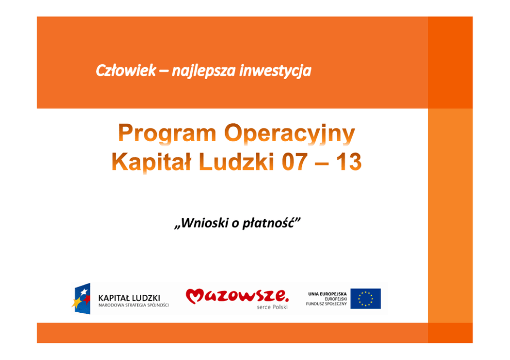„Wnioski o płatność” Podstawowe dokumenty Wytyczne w zakresie kwalifikowania wydatków w ramach PO KL z 22 listopada 2011 r. Zasady finansowania PO KL z 21 grudnia 2010 r. Wniosek o płatność Podstawowe zasady kwalifikowania wydatków: Są nie zbędne dla realizacji projektu (mają bezpośredni związek z celami projektu) Są racjonalne i efektywne (tzn. nie są zawyżone w stosunku do cen rynkowych oraz spełniają wymogi efektywnego zarządzania finansami) Są we właściwy sposób udokumentowane Są zgodne z zatwierdzonym budżetem projektu Są zgodne ze szczegółowymi zasadami określonymi w Wytycznych w zakresie kwalifikowania wydatków PO KL: nie zostały wymienione w katalogu wydatków Niekwalifikowanych POKL; Zostały poniesione zgodnie z zasadami określonymi w wytycznych Są zgodne z odrębnymi przepisami prawa krajowego i wspólnotowego, w szczególności z Ustawą Prawo zamówień publicznych (jeśli dotyczy) Podmiot będący strona umowy na etapie realizacji projektu, w szczególności może podjąć decyzję o uznaniu całości lub części wydatków za niekwalifikowane w przypadku naruszenia przez Beneficjenta zasady efektywnego zarządzania finansami. Koszty Pośrednie Koszty pośrednie stanowią koszty związane z obsługa techniczną projektu, których nie można bezpośrednio przyporządkować do konkretnego zadania. Koszty pośrednie mogą być rozliczane na dwa sposoby: I. Ryczałtowo – w przypadku rozliczani kosztów pośrednich ryczałtem, procentowy ryczałt kosztów pośrednich jest wskazany w umowie o dofinansowanie projektu w stosunku do wydatków bezpośrednich (pomniejszonych o zadania zlecone) wykazywanych za dany okres rozliczeniowy. Istnieje możliwość zatwierdzenia wniosku o płatność z kwotą kosztów pośrednich rozliczanych ryczałtowo inną niż wynikająca z ryczałtu kosztów pośrednich określonego w umowie o dofinansowanie oraz kumulatywnego rozliczenia kosztów pośrednich, ale dotyczy to głównie projektów, w których w trakcie realizacji zmianie ulegnie kwota zadań merytorycznych zlecanych na zewnątrz. W takiej sytuacji powinien na nowo zostać wyliczony wskaźnik ryczałtowy kosztów pośrednich i jeśli uległ on zmianie umowa powinna zostać aneksowana. W sytuacji takiej zachodzi konieczność wyrównania poziomu ujętych we wnioskach o płatność kosztów pośrednich do kwoty wynikającej ze wskaźnika kosztów pośrednich określonego w umowie i powinno to nastąpić w kolejnym wniosku o płatność składanym po aneksowaniu umowy o dofinansowanie. II. Na podstawie rzeczywiście poniesionych wydatków – wykazywane we wniosku o płatność w Zestawieniu dokumentów potwierdzających poniesione wydatki objęte wnioskiem wykazywanych za dany okres rozliczeniowy. Wniosek o płatność Wniosek o płatność: 1. jest dokumentem składanym w celu monitorowania postępu finansowego i rzeczowego realizacji projektu zgodnie z zatwierdzonym wnioskiem o dofinansowanie oraz harmonogramem płatności stanowiącym załącznik do umowy o dofinansowanie projektu a także rozliczającym środki dofinansowania otrzymane w ramach zaliczki; 2. składa się z trzech części: • wniosek o płatność; • załącznik nr 1 „ Zestawienie dokumentów potwierdzających poniesione wydatki objęte wnioskiem” • załącznik nr 2 „Szczegółowa charakterystyka udzielonego wsparcia” • Formularz PEFS 3. wypełniany jest w Generatorze wniosków płatniczych dostępnym na stronie internetowej Europejskiego Funduszu Społecznego www.efs.gov.pl, 4. wniosek o płatność składany jest do właściwej IP/IW będącym stroną umowy z Beneficjentem w terminach określonych w umowie o dofinansowanie projektu (harmonogram płatności stanowiący załącznik do umowy), nie rzadziej jednak niż raz na trzy miesiące, w terminie nie później niż 10 dni roboczych od zakończenia okresu rozliczeniowego. Wniosek składany jest w wersji papierowej i elektronicznej. Za termin złożenia wniosku o płatność do właściwej IP/IW uznaje się termin nadania przedmiotowego dokumentu w placówce pocztowej operatora publicznego, przy czym jeżeli termin złożenia wniosku przypadłby w dzień wolny od pracy wówczas uznaje się, że wniosek o płatność jest złożony terminowo, jeśli zostanie nadany w pierwszym dniu roboczym przypadającym po dniu wolnym od pracy, • • • Wraz z wnioskiem o płatność należy dostarczyć: wersja papierowa wniosku o płatność z której składa się: sam wniosek, załącznik nr 1 „Zestawienie dokumentów potwierdzających poniesione wydatki objęte wnioskiem”, załącznik nr 2 „Szczegółowa charakterystyka udzielonego wsparcia” (uzupełniamy w Generatorze wniosków płatniczych w zakładce postęp rzeczowy); - na płycie nagrany cały wniosek o płatność w XML i PDF oraz zał. nr 1. i 2 w Excelu; - formularz PEFS zabezpieczony hasłem. Wypełnianie wniosku o płatność Punkt 1 - (1_) Należy wpisać okres za jaki składany jest wniosek. Powinien on być zgodny z harmonogramem płatności załączonym do umowy o dofinansowanie projektu. Punkt 2 - (2_(6)) Należy wpisać numer umowy o dofinansowanie projektu/decyzji o dofinansowanie zgodny z KSI. W przypadku, gdy został zawarty aneks, należy wskazać aneks obowiązujący w dniu przekładania wniosku do instytucji weryfikującej wniosek. - (2_(7)) Należy wpisać okres realizacji projektu określony w zatwierdzonym wniosku o dofinansowanie projektu. - (2_(8)) Płatność – w przypadku gdy beneficjent otrzymuje dofinansowanie z góry w formie zaliczki, po czym rozlicza w kolejnych wnioskach o płatność poniesione przez siebie wydatki należy wskazać „płatność zaliczkową”. W pozostałych przypadkach (w tym w przypadku projektu systemowego PUP) należy wpisać „nie dotyczy”. - (2_(9)) Należy wskazać wartość wydatków rozliczanych danym wnioskiem. - (2_(10)) Pole wypełniane jest wówczas gdy beneficjent zaznaczył w pkt (2_(8)) „płat