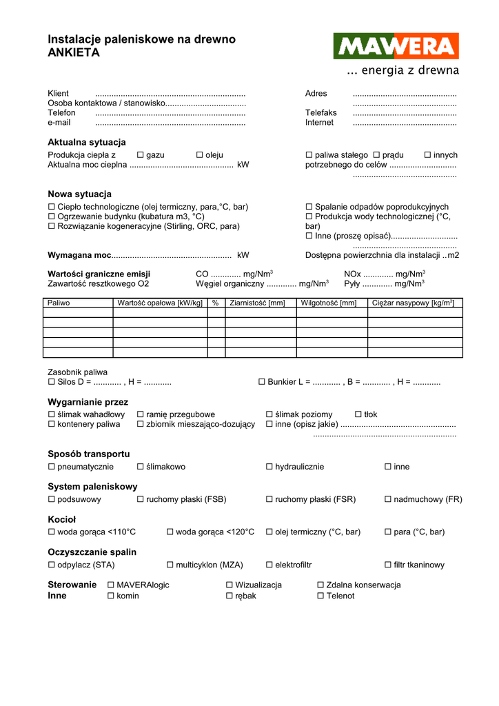 Instalacje paleniskowe na drewno ANKIETA energia z drewna