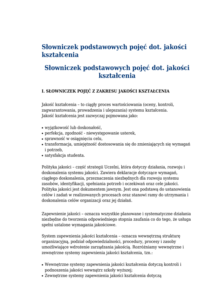 Słowniczek podstawowych pojęć dot. jakości kształcenia