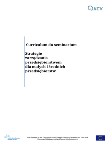 Curriculum do seminarium Strategie zarządzania przedsiębiorstwem dla małych i średnich przedsiębiorstw Part-financed by the European Union (European Regional Development Fund and European Neighbourhood and Partnership Instrument) Spis treści 1. Podsumowanie najważniejszych cech...............................................................................3 1.1 1.2 1.3 1.4 1.5 1.6 Cel........................................................................................................................................................... 3 Grupy docelowe ................................................................................................................................ 3 Czas trwania i timing....................................................................................................................... 3 Kwalifikacje docenta/docentów ................................................................................................ 3 Wymagane wyposażenie techniczne ........................................................................................ 3 Uwagi metodologiczno-dydaktyczne ....................................................................................... 3 2. Koncepcja seminarium ..........................................................................................................4 1 specjalizacja tematyczna: stałe są tylko zmiany ...……..…………………………….4 2 specjalizacja tematyczna: wygramy dzięki innowacjom ...….……………………5 3 specjalizacja tematyczna: klient jest panem……………….……………………………7 4 specjalizacja tematyczna: wspólność czyni silnym ……………….……………….15 5 specjalizacja tematyczna: pozyskiwanie darmowej energii ……...…………..17 6 specjalizacja tematyczna: opis na bazie przykładu ...………………….…………21 3. Certyfikat .................................................................................................................................. 21 Seminarium zostało opracowane przez Hanse-Parlament i jest używane w różnych państwach nadbałtyckich. Dla znajdujących się poniżej list podane są tylko treści do przekazania w formie hasłowej. Do prezentacji zaleca się konieczne dokonanie uzupełnień o właściwe dla danego kraju dane, rysunki, przykłady itp. str. | 2 Part-financed by the European Union (European Regional Development Fund and European Neighbourhood and Partnership Instrument) 1. Podsumowanie najważniejszych cech 1.1 Cel Przegląd i wprowadzenie w główne tematy zarządzania przedsiębiorstwem. 1.2 Grupy docelowe a) Właściciele i kadra kierownicza małych & średnich przedsiębiorstw b) Potencjalni kandydaci na prowadzących działalność gospodarczą 1.3 Czas trwania i timing 9 pełnych godzin, na przykład jako a) trzy spotkania wieczorne, b) jedno spotkanie popołudniowe i wieczorne c) spotkanie dzienne (również weekendowe) 1.4 Kwalifikacje docenta/docentów Seminarium powinno być w miarę możliwości przeprowadzone przez docentów dysponujących zarówno obszerną wiedzą w zakresie zarządzania przedsiębiorstwem, rozwijania kadry personalnej i organizacji, jak również własnymi praktycznymi doświadczeniami w prowadzeniu małych & średnich przedsiębiorstw. Zaleca się zaangażowanie do seminarium 1-2 docentów. Docenci powinni być nie tylko kompetentni w odniesieniu do specjalizacji, lecz również w zakresie dydaktycznym dysponować doświadczeniem w prezentacjach i dyskusjach. Plusem jest tutaj oczywiście kierowanie pracą w grupie i znajomość różnych dobrych przykładów z praktyki małych & średnich przedsiębiorstw. 1.5 Wymagane wyposażenie techniczne - flip chart - tablica i kreda - komputer z projektorem - dostęp do internetu w laptopie docenta - ekran - tablice do przypinania 1.6 Uwagi metodologiczno-dydaktyczne Grupa 10 – maksymalnie 25 osób; certyfikat dla uczestników str. | 3 Part-financed by the European Union (European Regional Development Fund and European Neighbourhood and Partnership Instrument) 2. Koncepcja seminarium 1 specjalizacja tematyczna: stałe są tylko zmiany Treść: warunki ramowe; trendy i legalność; rynek światowy i tygodniowy; podział pracy; internacjonalizacja Lista 1: nowa era zaufanie + kooperacja porównywalne do przejścia z gospodarki agrarnej do industrializacji wizja 6 cyklu Kondratiewa rewolucyjne zmiany + nowa orientacja Konsekwencje • stałe są tylko zmiany • przez zmiany prowadzą: pionier + strażnik • Change-Management (zarządzanie w otoczeniu zmian): nastawić się i przeprowadzić zmiany, jak też wykorzystać siły • świadome zniszczenie tego, co istniejące Przykład: przedsiębiorstwo rzemieślnicze z 70 pracownikami i „elektrycznym + +środowiskowym + zdrowotnym“ obszarem działania Lista 2: globalizacja nie jest to zjawisko nowe, nowa jest „tylko“ dynamika koncerny są spowolnione chorobą „łączenia się“ globalny paradoks: szanse dla klasy średniej niszczenie regionalnych kultur - kultura światowa to nonsens: szkodliwość dla ekonomii i ludzi globalizacja niszczy tożsamość = bezdomni prowadzi do usuwania różnic: przekroczony punkt kulminacyjny silny trend przeciwny: regionalizacja + decentralizacja Lista 3: globalny paradoks szybcy polują na wolnych potężne zapotrzebowanie na całym świcie na dopasowane techniki globalizacja prowadzi do regionalizacji Chiny przekroczyły punkt kulminacyjny Konsekwencje • niewykorzystany potencjał działalności międzynarodowej • dostawa rozwiązań skrojonych na miarę potrzeb • eksport kreatywności i innowacji • międzynarodowy sukces wskutek kooperacji Przykład: odbywająca się na całym świecie budowa zdecentralizowanych oczyszczalni ścieków (od 8 do 80 pracowników) Lista 4: podział pracy duży postęp w produktywności poprzez podział pracy ale: ekstremalne przyspieszenie, utrata wyznaczania celu wyłączanie lu