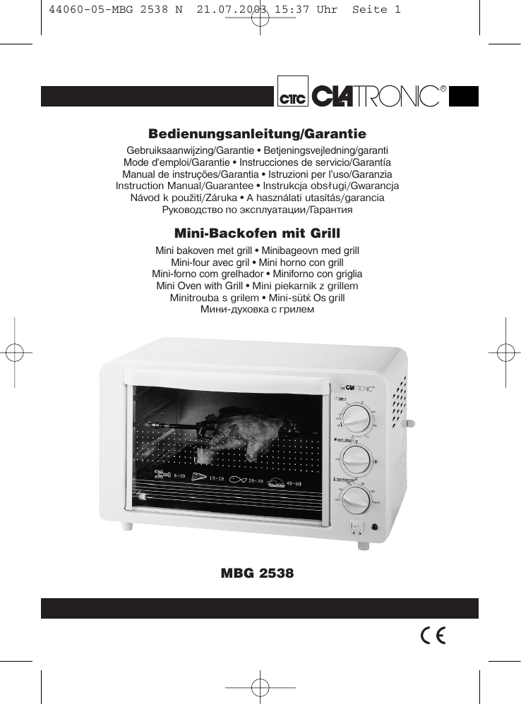 MBG 2538 Bedienungsanleitung/Garantie Mini-Backofen