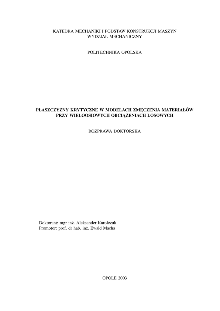 Promotor: prof. dr hab. inż. Ewald Macha