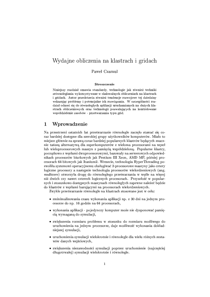 Wydajne obliczenia na klastrach i gridach Paweł Czarnul