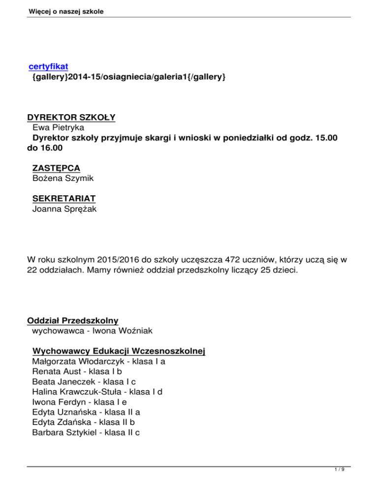22 oddziałach. Mamy również oddział przedszkolny liczący 25 dzieci.