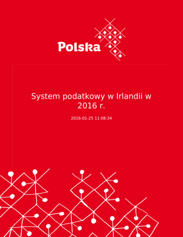 System podatkowy w Irlandii w 2016 r. 2016-01-25 11:08:34 2 W Irlandii obowiązują dwie stawki podatku PIT 20 proc. i 40 proc., a podatek CIT określono na poziomie 12,5 proc. przy czym stosuje się także stawkę podwyższoną - 25 proc. dla dochodów z operacji finansowych. Od 2016 r. wprowadzono także obniżoną stawkę podatku do 6,25 proc od zysków firm z działalności badawczo-rozwojowej Podatek od dochodów osobistych (Personal Income Tax - PIT) - w Irlandii obowiązują dwie stawki podatku PIT 20% i 40%. W zależności od sytuacji rodzinnej podatnika obowiązują następujące progi podatkowe: ■ ■ ■ ■ osoba samotna nieutrzymująca innych osób płaci 20% podatku od dochodu do 33.800 EUR, a od nadwyżki 40%; osoba samotnie wychowująca dzieci płaci 20% podatku od dochodu do 37.800 EUR, a od nadwyżki 40%; małżeństwo, w którym 1 osoba uzyskuje dochód: płaci 20% podatku od dochodu do 42.800 EUR, a od nadwyżki 40%; małżeństwo, w którym oboje uzyskują dochód: płaci 20% podatku od dochodu do 67.600 EUR, a od nadwyżki 40%. Tak wyliczony podatek dochodowy korygowany jest o kwotę wolną (np. dla osoby samotnej wynosi ona 1.650 EUR) oraz rozbudowany system odliczeń z tytułu np. spłaty kredytu hipotecznego, kosztów wynajmu mieszkania, wieku, kosztów edukacji czy też posiadania niepełnosprawnych dzieci. Osoby długotrwale bezrobotne (min. 12 miesięcy) rozpoczynające działalność gospodarczą mogą zostać zwolnione z podatku dochodowego na okres do dwóch lat (kwota nieprzekraczająca 40.000 EUR rocznie). Podatek od dochodów spółek (Corporate Income Tax – CIT) – stawka podstawowa wynosi 12,5%. Podwyższona do 25,0% stawka CIT dotyczy dochodów osiąganych z operacji finansowych np. od zysków z inwestycji. Nowo powstałe spółki mogą być zwolnione z obowiązku płacenia podatku dochodowego przez okres 3 lat, o ile ich zobowiązania podatkowe nie przekroczą rocznie kwoty 40 tys. EUR. Zwolnienia nie dotyczą firm usługowych i zajmujących się eksploatacją surowców. Od 2016 r. wprowadzono także obniżoną stawkę podatku do 6,25% (Knowledge Development Box) od zysków firm z działalności badawczo-rozwojowej realizowanej w Irlandii (od wytwarzanych wartości intelektualnych). Podatek od wartości dodanej VAT (Value Added Tax). Podstawowa stawka podatku VAT w Irlandii wynosi 23,0%. W przypadku niektórych towarów (np. określone rodzaje żywności) i usług (np. usługi remontowe) stosuje się stawkę obniżoną do wysokości 13,5%. Na wybrane usługi związane z turystyką, usługi cateringowe, hotelowe, seanse kinowe, przedstawienia teatralne, muzyczne, galerie, a także usługi sportowe, fryzjerskie, powiązane z turystyką usługi drukarskie i gazety obowiązuje stawka 9,0%. W rolnictwie stosuje się 5,2% stawkę VAT, a w obrocie zwierzętami hodowlanymi wynosi ona 4,8%. Na niektóre towary (np. określone rodzaje żywności, książki, farmaceutyki, sprzęt rehabilitacyjny, obuwie oraz ubrania dziecięce) stosuje się stawkę zerową. Stawka zerowa obowiązuje również przy eksporcie w ramach Unii Europejskiej, gdy nabywcą jest podatnik VAT (osoby fizyczne i firmy niezarejestrowane dla podatku VAT są z tego przywileju wykluczone). Podatek akcyzowy (Excise Duty) - objęte są nim m.in. wyroby alkoholowe, tytoniowe, paliwa oraz oleje. Podatek od darowizn i spadków (Capital Acquisitions Tax) - stawka podstawowa to 33%. Kwota wolna od podatku zależy od stopnia pokrewieństwa. W grupie A (syn/ córka) górna granica to 280 tys. EUR, w grupie B (rodzice, brat, siostra, siostrzeniec, siostrzenica, wnuki) – 30.150 EUR, w grupie C (pozostali) – 15.075 EUR. Podatek od zysków kapitałowych (Capital Gains Tax) - podatek dochodowy od zysków z inwestycji stawka podstawowa wynosi 33%. Od 1.01.2016 r. wprowadzono obniżoną stawkę w wysokości 20% dla zysków do 1 mln EUR. Podatek od wypłaconych dywidend (Dividend Withholding Tax) – podatek płacony przez spółki z siedzibą w Irlandii przy wypłacaniu dywidendy. Stawka podstawowa to 20% - w pewnych przypadkach możliwe jest 3 uzyskanie zwolnienia z obowiązku jego płacenia. Podatek od dochodów z depozytów bankowych (Deposit Interest Retention Tax; D.I.R.T.) – stawka wynosi 41%. Podatek przy kontraktach niektórych branż (Relevant Contract Tax; RCT) – podatek potrącany przez zleceniodawcę i przekazywany do urzędu skarbowego z wynagrodzenia podwykonawcy przy wypłatach wynikających z realizowanych kontraktów w branży budowlanej, leśnictwie oraz przetwórstwie mięsa. Podatek ten traktowany może być jako zaliczka na podatek dochodowy lub inny podatek należny fiskusowi (za zgodą tegoż). Stawki to 0%, 20% oraz 35%. Dla nowych podmiotów w branży budowlanej najczęściej domyślnie stosowana jest stawka 20%, o której zmianę na 0% można wnosić po kilku miesiącach działalności. Podatek stosowany jest zarówno wobec podmiotów zarejestrowanych w Irlandii jak i zagranicznych. Opłata skarbowa (Stamp Duty) – objęte są nią niektóre czynności prawne (np. transakcje kupna-sprzedaży w obrocie nieruchomościami) oraz określone usługi finansowe (korzystanie z kart bankowych, obrót czekowy, zbywanie udziałów w spółkach). Zależnie od dokumentu opłata występuje w postaci ad valorem lub stałej stawki. W obrocie niektórymi dokumentami używany jest system pobierania opłat skarbowych poprzez wydanie certyfikatu (znaczka skarbowego; eStamping system). Podatek z tytułu rejestracji pojazdów (Vehicle Registration Tax) – podatek dotyczy wszystkich nowo rejestrowanych pojazdów w Irlandii. Podatek dotyczy również używanych pojazdów importowanych. Niezależnie od tego, co roku właściciele pojazdów opłacają podatek drogowy (Motor Tax). Dla pojazdów zarejestrowanych przed lipcem 2008 r. wysokość podatku drogowego zależy od pojemności silnika. W przypadku pojazdów zarejestrowanych po 1 lipca 2008 r., jego wysokość jest uzależniona od emisji dwut