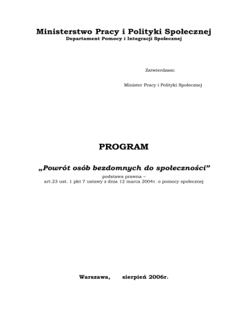 Koncepcja Programu pod nazwą: „Powrót osób bezdomnych do społeczności”, zmierza do: