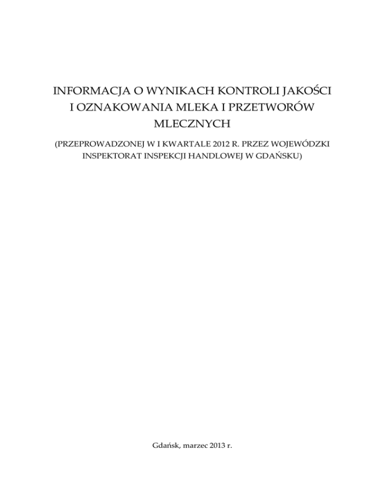 informacja o wynikach kontroli jakości i oznakowania mleka