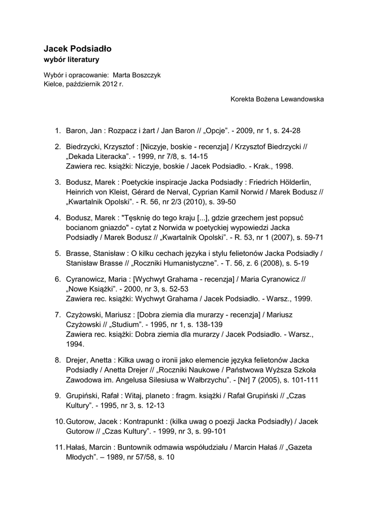5. Brasse, Stanisław : O kilku cechach języka i stylu felietonów Jacka Podsiadły /