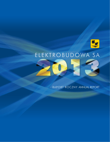 E L E KT R O B U D O WA S A RAPORT ROCZNY ANNUAL REPORT KEY DATA WYBRA NE WARTOÂ CI Udział procentowy w liczbie głosów i kapitale zakładowym Percentage share in number of votes and in share capital Liczba akcji równa liczbie głosów Numbers of shares = number of votes 13, AVIVA OFE AVIVA BZ WBK SA 625 454 % 1 855 011 4 747 608 5,0 9% 696,6 1800,0 900,0 450,0 2006 2007 2008 2009 2010 2011 Zamówienia Przychody (w mln PLN)ze /Orders received sprzeda˝y (w(PLNm) mln PLN) 664,0 893,9 786,2 661,8 345,7 455,8 2006 2006 539,1 591,5 618,8 852,4 664,0 2011 786,2 2008 2008 2009 2009 2010 2010 2011 2011 Portfel zamówie (w mln PLN) /Order backlog (PLNm) Przychody ze sprzeda y (w mln PLN) /Revenus (PLNm) 0 2013 974,1 661,8 853,5 1754,3 752,5 2012 2007 2007 539,1 2008 2008 591,5 2009 2009 618,8 2010 2010 2013 1754,3 1800,0 1000,0 853,5 56,3 1800,0 750,0 2011 2011 900,0 500,0 2012 2012 0 0 2013 2013 900,0 250,0 803,5 450,0 0 2012 2012 2013 0 2013 (PLNm) 58,4 60,0 49,6 1350,0 750,0 803,5 852,4 Przychody ze sprzeda y (w mln PLN) /Revenus (PLNm) PLN)(w /Order backlog (PLNm) Portfel zamówie (w mln Zysk mln PLN) / Net profit / Revenus (PLNm) 974,1 345,7 455,8 2006 1000,0 1350,0 500,0 45,0 33,9 32,6 30,0 14,4 19,3 450,0 250,0 2007 2007 2012 450,0 452,0 2006 0 752,5 452,0 2010 900,0 1350,0 911,2 739,1 2009 1350,0 Portfel zamówień (w mln PLN) / Order backlog (PLNm) 893,9 1098,8 888,7 2008 Zamówienia (w mln PLN) /Orders received (PLNm) 1784,3 777,7 2007 911,2 739,1 9, 4 2006 Zamówienia (w mln PLN) / Orders received (PLNm) 566,2 696,6 1800,0 44 Pozostali akcjonariusze Free float Razem Total number of shares 566,2 1 85 50 11 39,0 7 241 640 1098,8 888,7 289 36 9 2 41 64 0 Generali OFE 777,7 6,10% 289 369 % Amplico OFE 1784,3 7,64 362 730 1% PKO BP Bankowy OFE 730 362 446 553 3 55 AXA OFE 9,57% 454 446 5% 9,9 OFE PZU „Złota Jesień” 454 44 6 472 405 625 45 4 05 24 47 ING OFE (Pension Fund) 17 % 6 Stan na: As at: 31.12.2013 13,3 2006 2007 2008 2009 Zysk (w mln PLN) /Net profit (PLNm) 2010 2011 15,0 0 2012 2013 2013 ELEKTROBUDOWA SA R A P O RT R O CZN Y ANNUAL REPORT 2013 Selected financial Data WYBRA NE DAN E FI N AN S O W E w tys. PLN/in thousands of PLN WYBRANE DANE FINANSOWE SELECTED FINANCIAL DATA jednostkowe company Przychody ze sprzedaży ogółem Total sales revenues Zysk z działalności operacyjnej Operating profit Zysk brutto przed opodatkowaniem Gross profit before taxes Zysk netto przypadający na akcjonariuszy ELEKTROBUDOWY SA Net profit attributable to shareholders of ELEKTROBUDOWA SA Zysk netto przypadający na udziałowców mniejszościowych Net profit for minority activities Zysk netto okresu obrotowego z działalności kontynuowanej Net profit for the period from continuing operations Przepływy pieniężne z działalności operacyjnej Cash flows from operating activities Przepływy pieniężne z działalności inwestycyjnej Cash flows from investing activities Przepływy pieniężne z działalności finansowej Cash flows from financing activities Zwiększenie/ zmniejszenie netto stanu środków pieniężnych Net increase/ decrease in cash Aktywa trwałe Non-current assets Aktywa obrotowe Current assets Aktywa, razem Total assets Zobowiązania długoterminowe Non-current liabilities Zobowiązania krótkoterminowe Current liabilities Zobowiązania, razem Total Liabilities Kapitał własny przypadający na akcjonariuszy Spółki Equity attributable to Company shareholders Kapitał mniejszości Minority interest Kapitał własny Equity Kapitał zakładowy (po przeszacowaniu) Share capital (after restatement) Liczba akcji (w sztukach) Number of shares (pcs) Wartość księgowa na jedną akcję (w PLN ) Book value per share (in PLN ) E L E KTR OBU DOWA S A 2 skonsolidowane group 2013 2012 2013 2012 853 547 974 061 905 553 1 018 002 19 690 17 356 24 592 22 458 20 911 22 023 25 904 27 854 17 213 22 899 372 316 13 306 19 325 56 744 26 417 61 761 30 660 (10 096) (15 427) (11 356) (16 002) (15 995) (8 129) (16 120) (8 162) 30 653 2 861 34 285 6 496 217 995 213 873 199 527 197 762 544 413 469 066 576 137 494 072 762 408 682 939 775 664 691 834 18 598 20 036 19 404 21 156 419 458 344 355 429 536 351 796 438 056 364 391 448 940 372 952 325 614 318 102 1 110 780 324 352 318 548 26 375 26 375 26 375 26 375 4 747 608 4 747 608 4 747 608 4 747 608 68.32 67.10 68.58 67.00 2 0 1 3 CONTENTS S P IS TREÂ CI Wybrane wartości 2 Wybrane dane finansowe 4 List do Akcjonariuszy 7 Organizacja grupy kapitałowej 8 Schemat organizacyjny 9Zarząd ELEKTROBUDOWY SA 9 Struktura kapitału 10Rada Nadzorcza 10 Struktura akcjonariatu 11 Struktura Grupy kapitałowej ELEKTROBUDOWA SA 14ELEKTROBUDOWA SA na świecie 15 Aktualna i przewidywana sytuacja finansowa 16 Struktura przychodów 17 Wynik finansowy oraz podstawowe czynniki i nietypowe zdarzenia mające wpływ na jego wielkość 21 Analiza finansowa 24Zarządzanie zasobami finansowymi 25Zarządzanie Systemem Jakości 27Zarządzanie kapitałem ludzkim 29Zarządzanie BHP 30 Perspektywy rozwoju działalności i istotne czynniki ryzyka i zagrożeń 35 Sytuacja rynkowa 36Kierunki sprzedaży 39Inwestycje zrealizowane w 2013 roku 41Eksport 43Znaczące kontrakty 44 Rozwój innowacyjny 45 Ważniejsze prace prowadzone w dziedzinie rozwoju technicznego 47 Informacje dla akcjonariuszy 48 Spółka na giełdzie 49Kurs akcji w 2013 roku 49Kalendarz publikacji raportów w roku 2014 50Dywidenda 50Ład korporacyjny 51 Społeczna Odpowiedzialność Biznesu 53Raport finansowy 54 Sprawozdanie z sytuacji finansowej 56 Sprawozdanie z całkowitych dochodów 58 Sprawozdanie ze zmian w kapitale własnym 59 Skonsolidowane sprawozdanie ze zmian w kapitale własnym 61 Sprawozdanie z przepływów pieniężnych 63 Opinia niezależnego biegłego rewidenta 2013 Key data 2 Selected financial data 4 A letter to Shareholders 7 Organization of the ELEKTROBUDOWA SA Group 8 Organization chart 9The Management Board 9Capital structure 10The Supervisory Board 10Shareholders 11 Organization structure 14ELEKT