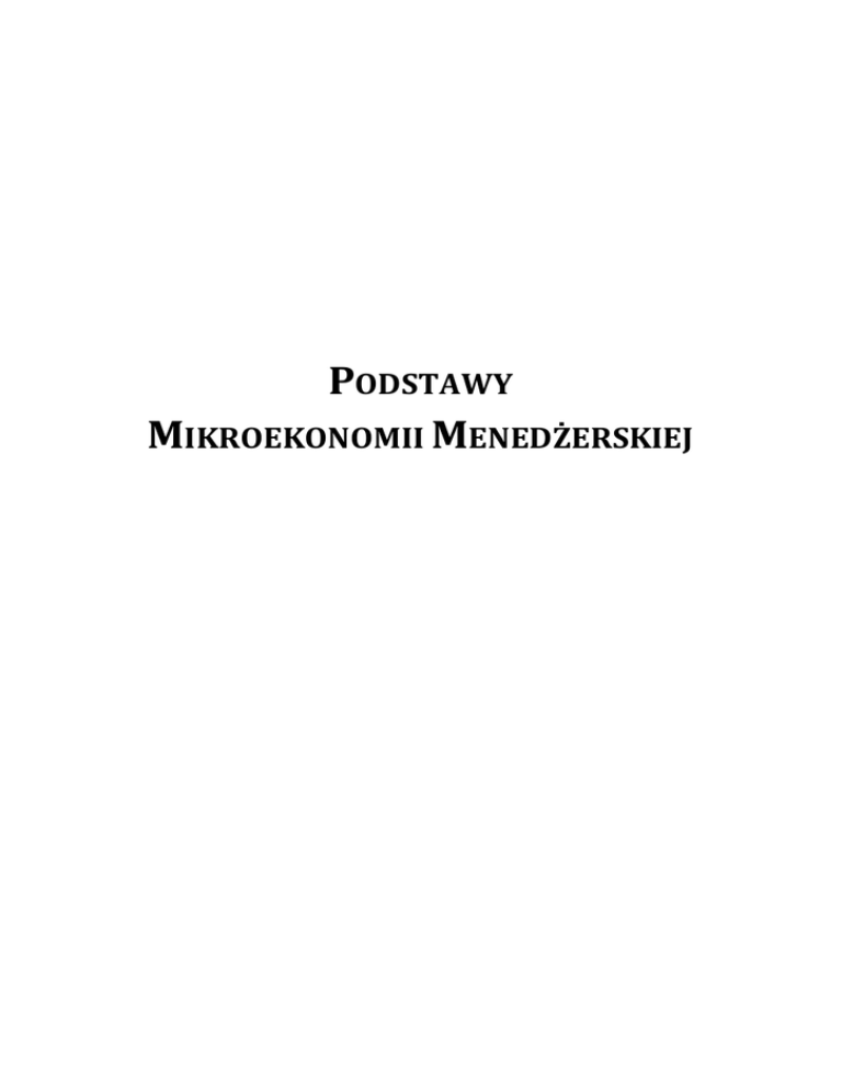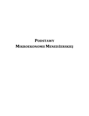 PODSTAWY MIKROEKONOMII MENEDŻERSKIEJ Adam P. Balcerzak Uniwersytet Mikołaja Kopernika w Toruniu Elżbieta Rogalska Uniwersytet Warmińsko-Mazurski w Olsztynie PODSTAWY MIKROEKONOMII MENEDŻERSKIEJ Instytut Badań Gospodarczych Toruń 2013 Recenzja dr hab. Jerzy Boehlke, prof. UMK dr hab. Mirosław Gornowicz, prof. UWM Projekt okładki Jarosław Cholewiński, Elżbieta Rogalska Fotografia na okładce Piz Badille w grupie Bergell w Alpach Retyckich Adam P. Balcerzak © Copyright by Adam P. Balcerzak i Elżbieta Rogalska ISBN 978-83-937843-0-1 Instytut Badań Gospodarczych ul. Kopernika 21 87-100 Toruń www.badania-gospodarcze.pl e-mail: [email protected] Drukarnia Cyfrowa EIKON PLUS ul. Wybickiego 46 31-302 Kraków Spis Treści Wprowadzenie ................................................................................................ 13 Rozdział 1 Optymalizacja decyzji gospodarczych............................... 17 Racjonalność podmiotów w podejmowaniu decyzji ................. 17 Pułapki podejmowania decyzji gospodarczych .......................... 20 Analiza marginalna ................................................................................. 25 Utarg całkowity .................................................................................. 26 Koszty całkowite działalności przedsiębiorstwa ................. 28 Zysk ......................................................................................................... 29 Wartości krańcowe zysku, utargu i kosztu ............................. 30 Utarg krańcowy a cena .................................................................... 34 Zmiana warunków prowadzenia działalności gospodarczej – analiza wrażliwości ........................................... 36 Czysty problem sprzedaży ................................................................... 37 Podstawowe pojęcia ............................................................................... 39 Lektura dodatkowa dla dociekliwych ............................................. 39 6 Spis treści Studium przypadku 1. Sieć szkół językowych „Babel” ............. 40 Zadanie z rozwiązaniem ....................................................................... 42 Pytania sprawdzające i zadania ......................................................... 45 Rozdział 2. Elastyczność popytu. Optymalna polityka cenowa.......................................................................................... 53 Elastyczność cenowa popytu .............................................................. 55 Wyliczanie elastyczności cenowej popytu .............................. 60 Czynniki wpływające na elastyczność cenową popytu ...... 66 Elastyczność cenowa popytu a całkowite wydatki konsumentów ..................................................................................... 69 Elastyczność mieszana (krzyżowa) popytu .................................. 74 Elastyczność dochodowa popytu ...................................................... 77 Prognozowanie wielkości popytu ..................................................... 79 Optymalna polityka cenowa ................................................................ 80 Różnicowanie cen jako strategia cenowa przedsiębiorstwa ..................................................................................... 85 Podstawowe pojęcia ............................................................................... 87 Lektury dodatkowe dla dociekliwych ............................................. 87 Studium przypadku 2. Charakterystyka polityki cenowej linii lotniczych ........................................................................................... 87 Zadanie z rozwiązaniem ....................................................................... 91 Pytania sprawdzające i zadania ......................................................... 96 Spis treści 7 Rozdział 3. Decyzje przedsiębiorstwa o podaży. Analiza kosztów ..................................................................................... 103 Zysk ekonomiczny a zysk księgowy ............................................... 103 Koszty stałe i koszty utopione .......................................................... 104 Produkcja a koszty ................................................................................ 105 Produkt krańcowy........................................................................... 109 Produkt przeciętny ......................................................................... 110 Trzy etapy produkcji ...................................................................... 111 Optymalne wykorzystanie czynnika produkcji................... 114 Zależność pomiędzy funkcją produkcji a poziomem kosztów całkowitych przedsiębiorstwa................................. 115 Efektywność produkcji w długim okresie ................................... 118 Zależności pomiędzy kosztami w krótkim okresie .................. 121 Koszty a korzyści skali w długim okresie .................................... 125 Korzyści zakresu .................................................................................... 128 Krzywa uczenia się ................................................................................ 130 Zasada zamknięcia przedsiębiorstwa ........................................... 132 Podstawowe pojęcia ............................................................................. 134 Lektury dodatkowe dla dociekliwych ........................................... 135 Zadania z rozwiązaniem ..................................................................... 135 Pytania sprawdzające i zadania ....................................................... 140 8 Spis treści Rozdział 4. Konkurencja doskonała ...................................................... 147 Charakterystyka branży wolnokonkurencyjnej........................ 150 Krzywa popytu przedsiębiorstwa wol