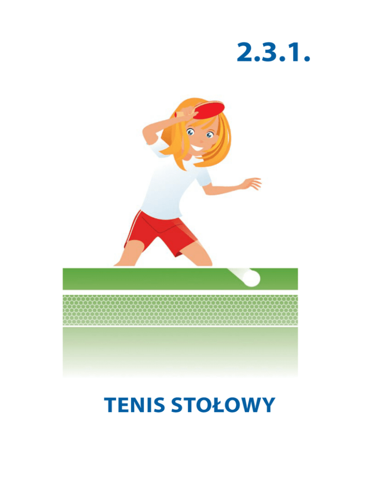 2.3.1. tenis stołowy tenis stołowy Wprowadzenie Tenisem stołowym interesują się i trenują go miliony ludzi na całym świecie. Obok piłki nożnej jest najczęściej uprawianą dyscypliną sportu. O sukcesie popularnego ping-ponga decyduje wiele czynników. Jest grą, w którą może grać praktycznie każdy: bez względu na wiek, płeć, rodzaj niepełnosprawności. Mnogość sposobów gry powoduje, że nie ma konkretnego jednego modelu mistrza dla wszystkich. Sprzęt jest niedrogi, stół i pole gry nie zajmuje dużo powierzchni. Urok tenisa stołowego polega również na tym, że jest dyscypliną, która obok kształtowania cech motorycznych: szybkości, koordynacji ruchowej, siły dynamicznej, wspomaga koncentrację i odporność psychiczną. Tenis stołowy mimo swej prostoty to gra pełna różnorodnych elementów technicznych i taktycznych. Wiele przemawia za tym, że tenis stołowy znany był już przed kilkuset laty w Azji jako japońska gra gossima. W XIX wieku został przeniesiony do Europy za pośrednictwem Anglików. Ping-pong rozwinął się dzięki graczom w tenisa, którzy podczas niepogody przenosili się z kortów do salonów. Tam na stołach – rakietami tenisowymi grano w grę stanowiącą początki tenisa stołowego. Pierwsze przepisy gry ustalono w 1884 roku w Londynie. Pierwsze rakietki drewniane pokrywano pergaminem lub korkiem, piłeczki używane do gry były wykonane z gumy lub korka. Rewolucją było w 1890 roku wprowadzenie przez inżyniera Jamesa Gibba piłeczek celuloidowych. Ewolucja rakietki spowodowana była zastosowaniem różnych jej rodzajów w zależności od charakteru i techniki gry. Innym ważnym impulsem rozwoju i rozpowszechnianiu dyscypliny był debiut tenisa stołowego na Igrzyskach Olimpijskich w 1988 roku w Seulu. Podstawowe przepisy gry w tenisa stołowego Tenis stołowy to gra, w której mogą uczestniczyć dwie (gra pojedyncza) lub cztery osoby (gra podwójna). Polega na przebijaniu piłki rakietką, tak by przeleciała nad siatką na drugą stronę stołu. Piłka musi dotknąć stołu (tylko raz), a niedozwolone jest uderzanie piłeczki bezpośrednio z powietrza. Gra toczy się do zdobycia 11 punktów w secie, wyjątkiem jest stan 10:10, wtedy gra toczy się do momentu, kiedy jedna ze stron zdobędzie 2 punkty przewagi. Zwycięzcą pojedynku zostaje ten, kto jako pierwszy wygra potrzebną do zwycięstwa liczbę setów w meczu (2, 3, 4). Każdy pojedynek rozpoczyna się od losowania, zawodnika, który ma prawo do wyboru podania, odbioru lub strony stołu. Rozpoczęcie meczu następuje podczas wykonywania serwisu przez gracza. Po każdych 2 punktach, które zostały zaliczone następuje zmiana podającego, wyjątek stanowi stan, w którym wynik wynosi 10:10, wtedy serwujący zmieniają się co jeden punkt. Punkty zdobywa się w przypadku: zz niewłaściwego serwisu przeciwnika, zz nieodebraniu zagrania przez przeciwnika, zz gdy piłeczka uderzona przez przeciwnika nie dotknie pola gry gracza, 172 tenis stołowy zz zz jeśli przeciwnik zatrzyma nieprawidłowo piłeczkę podwójnego uderzenia piłeczki przez konkurenta (gra podwójna). Wyposażenie i warunki do gry: wymiary stołu do gry to: 2,74 m długości, 1,525 m szerokości i 76 cm wysokości; zz siatka powinna być umocowana na wysokości 15,25 cm; zz do gry należy używać piłki o średnicy 40 mm. zz Wysokość siatki: 15,25 cm Szerokość: 152,5 cm Wysokość: 76 cm m ć: 274 c Długoś GRY I ZABAWY BIEŻNE Ćwiczenia wszechstronne z elementami tenisa stołowego (1-3 klasa szkoły podstawowej) Głównym celem ćwiczeń z elementami tenisa stołowego w tym wieku jest wprowadzenie do dyscypliny, oswojenie ze sprzętem (rakietką, piłeczką) oraz wytwarzanie prawidłowych nawyków poruszania się przy stole (gry i zabawy bieżne). W miarę możliwości można zacząć wprowadzać proste elementy techniczne – pokazanie prawidłowej pozycji wyjściowej, przebicie, półwolej (forhend i bekhend). Jeżeli nauczyciel wychowania fizycznego widzi, że dany uczeń wykazuje zdolności do szybkiego pojmowania elementów technicznych, należy takie osoby kierować do klubów zajmujących się szkoleniem tenisa stołowego. Rodzaje ćwiczeń z elementami stołowego stosowane w klasach 1-3: zabawy i gry bieżne, zabawy oswajające z piłeczką, zz zabawy i gry oswajające z prawidłowym chwytem rakietki, zz zz 173 tenis stołowy zabawy i gry rzutne, zabawy i gry z piłeczką i rakietką, zz ćwiczenia oddechowe z piłeczką, zz podstawowe elementy techniczne. zz zz Ćwiczenia wstępne w tenisie stołowym (4-6 klasa szkoły podstawowej) Na tym etapie edukacyjnym kontynuujemy i rozwijamy różnego rodzaju gry i zabawy z elementami tenisa stołowego (ćwiczenia wszechstronne) oraz przechodzimy do nauczania podstawowych elementów technicznych (ćwiczenia wstępne). Ćwiczenia wszechstronne Schemat wyścigu do słupków siatki Schemat przenoszenia piłeczek krokiem dostawnym Uczeń Kierunek wykonywania ćwiczenia 174 1. Berek „rzucany” Osoba, która goni innych uczestników berkuje ich za pomocą rzucanej piłeczki do tenisa stołowego. Trafiona osoba staje się berkiem. Berek musi stać w miejscu, kiedy trzyma piłeczkę. 2. Berek „tenisista” Dzieci mogą obronić się przed berkiem przyjmując prawidłową pozycję wyjściową w tenisie stołowym. 3. Berek dostawny dookoła stołu Początek ćwiczenia, dzieci stają w parach przy jednym stole naprzeciwko siebie. Dzieci poruszają się krokiem dostawnym dookoła stołu, jedno stara się dogonić drugie. Na sygnał prowadzącego następuje zmiana kierunku. 4. Wyścig do słupków siatki Ustawienie w parach naprzeciwko stołu. Na sygnał prowadzącego dzieci poruszają się krokiem dostawnym na swojej stronie stołu, dotykając za każdym razem ręką grającą słupków siatki. Wygrywa osoba, która w określonym czasie pokona najwięcej razy dystans pomiędzy słupkami siatki. 5. Przenoszenie piłeczek Na krzesłach lub ławeczkach gi