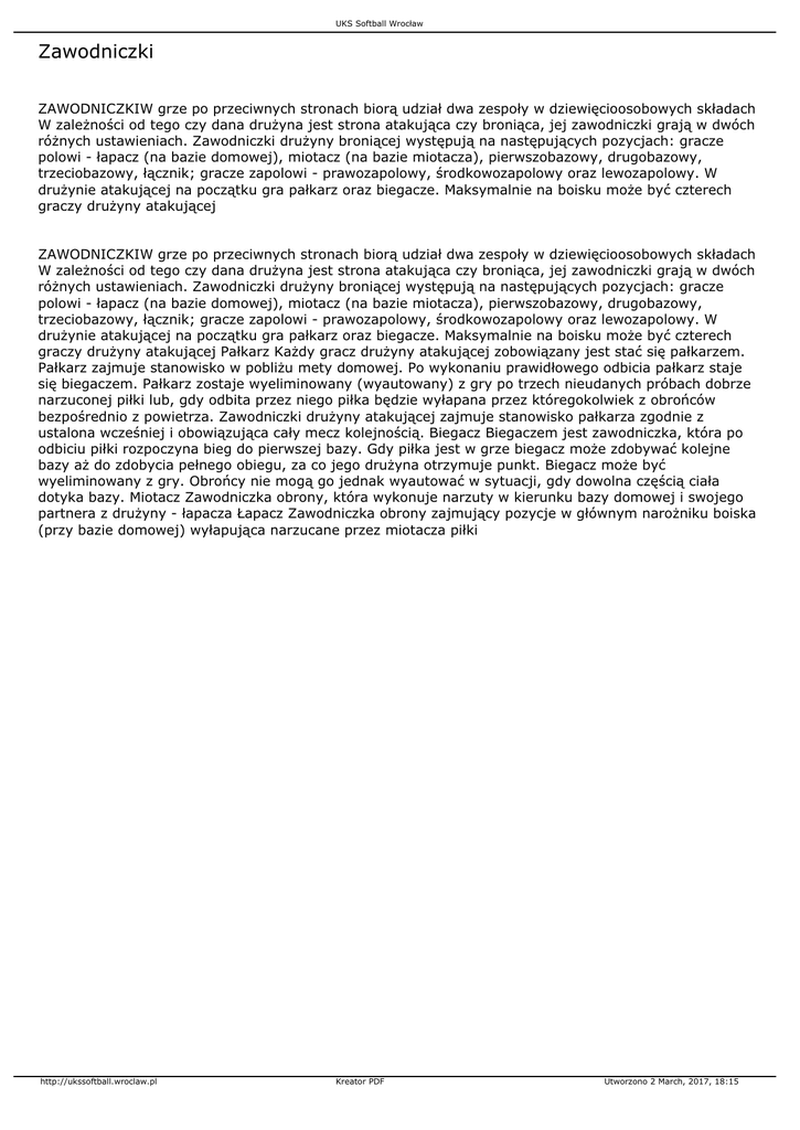 Zawodniczki - UKS Softball Wrocław