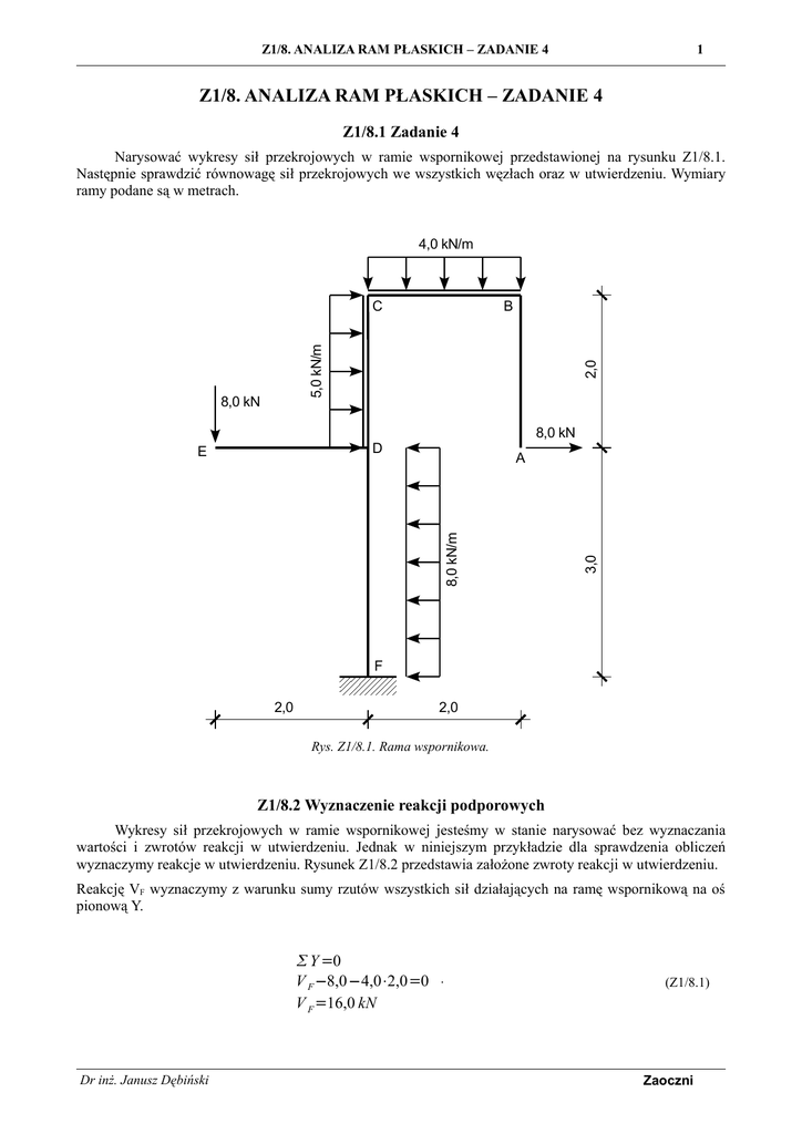 Z1/8. ANALIZA RAM PŁASKICH – ZADANIE 4