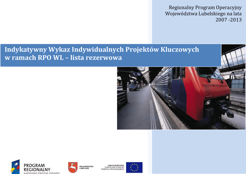 Regionalny Program Operacyjny Województwa Lubelskiego na lata 2007 -2013 Indykatywny Wykaz Indywidualnych Projektów Kluczowych w ramach RPO WL – lista rezerwowa Lp. Nazwa projektu / zakres projektu* 1 2 Oś Priorytetowa V Działanie 5.1 1. Budowa drogi wojewódzkiej Nr 809 stanowiącej dojazd do węzła „Jakubowice” w ciągu dróg ekspresowych S12, S17 i S19 – odcinek klasy GP Orientacyjny koszt całkowity projektu (mln PLN) 3 34,57 Maksymalny poziom dofinansowania z UE (mln PLN)* 4 Przewidywany okres realizacji projektu** Miejsce realizacji projektu (województwo) Instytucja odpowiedzialna za realizację projektu Uzasadnienie realizacji projektu 5 6 7 8 Województwo lubelskie Województwo Lubelskie Celem nadrzędnym projektu jest poprawa dostępności komunikacyjnej regionu lubelskiego poprzez przebudowę sieci drogowej, przy uwzględnieniu zasad zrównoważonego rozwoju gospodarczego i społecznego. Realizacja projektu wpłynie na podniesienie spójności terytorialnej oraz konkurencyjności i atrakcyjności inwestycyjnej i turystycznej województwa. Przedmiotem projektu jest budowa drogi dojazdowej od granicy administracyjnej m. Lublin do węzła „Jakubowice”obwodnicy, która ma na celu odciążenie miasta z ruchu tranzytowego, zmniejszenie czasu przejazdu i poprawę bezpieczeństwa. W wyniku realizacji projektu nastąpi wzmocnienie funkcji metropolitarnych Lublina jako ośrodka naukowego, administracyjnego i kulturalnego a także nastąpi wzrost atrakcyjności regionu i podniesienie aktywności ekonomicznej. Sprawny system transportowy ułatwi dostęp do terenów inwestycyjnych i atrakcji turystycznych. Wraz z rozwojem gospodarki i turystyki nastąpi ożywienie na rynku pracy. Projekt wpisuje się w cel V Osi Priorytetowej Regionalnego Programu Operacyjnego Województwa Lubelskiego na lata 2007-2013 (RPO WL): Poprawa wewnętrznej i zewnętrznej dostępności komunikacyjnej Lubelszczyzny. Projekt będzie realizował cel główny Narodowych Strategicznych Ram Odniesienia 2007 – 2013 (NSRO): Tworzenie warunków dla wzrostu konkurencyjności gospodarki opartej na wiedzy i przedsiębiorczości zapewniającej wzrost zatrudnienia oraz wzrost poziomu spójności społecznej, gospodarczej i przestrzennej poprzez realizację 3 celu horyzontalnego: budowa i modernizacja infrastruktury technicznej i społecznej mającej podstawowe znaczenie dla wzrostu konkurencyjności, a w związku z tym jest zgodny z II priorytetem Strategii Rozwoju Kraju na lata 2007 – 2015 (SRK): Poprawa stanu infrastruktury technicznej i społecznej. Projekt przyczynia się do osiągnięcia wskaźników SRK, NSRO oraz RPO WL. Projekt oraz wnioskodawca kwalifikują się do wsparcia w ramach RPO WL. 1 2. Rozbudowa drogi wojewódzkiej Nr 844 Chełm – Hrubieszów – Witków – Dołhobyczów – granica państwa na odcinku Witków – granica państwa od km 80 + 250 do km 88 + 705,50 39,56 Województwo lubelskie Województwo Lubelskie Przedmiotem projektu jest rozbudowa drogi wojewódzkiej Nr 844 na odcinku Witków – granica państwa od km 80+250 do km 88+705,50. Ww. odcinek drogi Nr 844 łączy województwo lubelskie z realizowanym przejściem granicznym z Ukrainą i stanowi połączenie o znaczeniu strategicznym dla rozwoju transportu i komunikacji pomiędzy Polską a Ukrainą. Realizacja inwestycji przyczyni się do poprawy warunków komunikacyjnych (zwiększenie przepustowości drogi), zmniejszenia zagrożenia bezpieczeństwa ruchu oraz zmniejszenia negatywnego oddziaływania transportu drogowego na otaczające środowisko. Poprawa jakości przedmiotowego odcinka drogi umożliwi nawiązanie współpracy przygranicznej przekładającej się na ożywienie gospodarcze, poprawi dostęp mieszkańców zarówno do regionalnego ośrodka administracyjnego, naukowego i kulturalnego jakim jest stolica województwa, jak i do lokalnych ośrodków, a także do głównych ośrodków Ukrainy. Projekt wpisuje się w cel V Osi Priorytetowej Regionalnego Programu Operacyjnego Województwa Lubelskiego na lata 2007-2013 (RPO WL): Poprawa wewnętrznej i zewnętrznej dostępności komunikacyjnej Lubelszczyzny. Projekt będzie realizował cel główny Narodowych Strategicznych Ram Odniesienia 2007 – 2013 (NSRO): Tworzenie warunków dla wzrostu konkurencyjności gospodarki opartej na wiedzy i przedsiębiorczości zapewniającej wzrost zatrudnienia oraz wzrost poziomu spójności społecznej, gospodarczej i przestrzennej, a w związku z tym jest zgodny z II priorytetem Strategii Rozwoju Kraju na lata 2007 – 2015 (SRK): Poprawa stanu infrastruktury technicznej i społecznej. Projekt przyczynia się do osiągnięcia wskaźników SRK, NSRO oraz RPO WL. Projekt oraz wnioskodawca kwalifikują się do wsparcia w ramach RPO WL. 2 Działanie 5.2 3. Rozbudowa drogi powiatowej Nr 2273L (ul.Zorza) – Abramowice Prywatne - Kalinówka 15,06 Województwo lubelskie Powiat Lubelski Celem strategicznym projektu jest zwiększenie konkurencyjności lokalnej gospodarki Powiatu Lubelskiego i Gminy Lublin poprzez rozwój podstawowej infrastruktury poprawiającej funkcjonowanie lokalnej gospodarki. Przedmiotem projektu jest rozbudowa drogi powiatowej nr 2273L Lublin (ul. Zorza) stanowiącej dojazd do węzła ,,Witosa” w ciągu drogi ekspresowej S 17. Przedmiotowa droga będzie pełnić funkcję ,,obwodnicy” dla południowo-wschodnich dzielnic Lublina, umożliwiając ich sprawną komunikację z realizowaną obecnie obwodnicą miasta poprzez węzeł ,,Witosa” w ciągu dróg ekspresowych nr 12 i 17. Zapewni także bezpośredni dojazd do południowo- wschodnich dzielnic miasta Lublina (siedziby władz województwa i Powiatu Lubelskiego). Inwestycja wpłynie na poprawę bezpieczeństwa ruchu drogowego i zmniejszy negatywne oddziaływanie na otaczające środowisko naturalne. Projekt wpisuje się w cel V Osi Priorytetowej Regionalnego Programu Operacyjnego Województwa Lubelskiego na lata 2007-2013 (RPO WL): Poprawa wewnętrznej i zewnętrznej