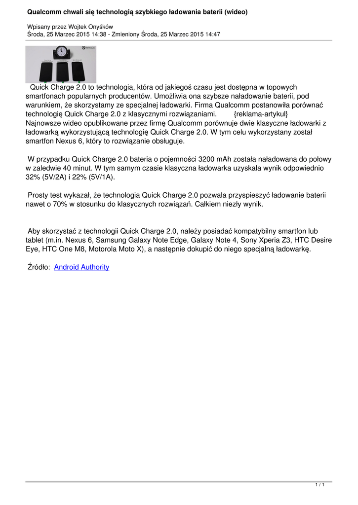 warunkiem, że skorzystamy ze specjalnej ładowarki. Firma Qualcomm postanowiła porównać
