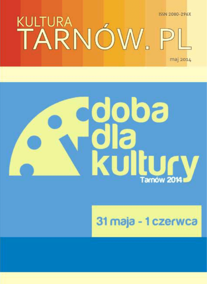 KULTURA 1 KALENDARZ KULTURALNY MAJ 2014 www.kultura.tarnow.pl maj 2014 r. 2 KULTURA Do 18 maja KALENDARZ KULTURALNY MAJ 2014 Dyplom 2014 Wystawa promująca najciekawsze dyplomy uczniów Zespołu Szkół Plastycznych. Wybrani autorzy prac: Reklama wizualna/Mateusz Jarmuła, Natalia Gębarowska, Ewelina Tyńska Mebel/Agata Kuta, Aleksandra Szwedo, Klaudia Bykiewicz Fotografia/Eliza Dworak. Wystawa prezentowana jest w przestrzeni „Wystawy stałej kolekcji Małopolskiej Fundacji Muzeum Sztuki Współczesnej”. Prace uczniów ZSP spotkają się z pracami wybitnych artystów Kolekcji, m.in. Pawła Althamera, Mirosława Bałki, Rafała Bujnowskiego, Leona Tarasewicza czy Wilhelma Sasnala. Wystawa czynna: wtorek-piątek 9-17, niedziela 11-18. BWA, Dworzec PKP w Tarnowie, Pl. Dworcowy 4. Wstęp wolny Do 10 czerwca Chińska Armia Terakotowa Na wystawie pokazano wierne repliki niektórych wojowników cesarskiej www.kultura.tarnow.pl Terakotowej Armii, wykonane według oryginalnej technologii sprzed dwóch tysięcy lat, ponadto oryginalne znaleziska archeologiczne. Obrazu całości tego niezwykłego odkrycia dopełniają film oraz plansze ilustracyjne. Muzeum Etnograficzne w Tarnowie, ul. Krakowska 10. Bilety: 10 zł Do 31 maja Polska. Europa. Świat Twarze Agnieszki Holland Ekspozycja przygotowana przez Muzeum Kinematografii w Łodzi poświęcona jednej z najwybitniejszych postaci kina, słynnej reżyserce filmowej i teatralnej. Wystawa prezentuje dorobek filmowy Agnieszki Holland. Są to przede wszystkim pochodzące z archiwum rodzinnego Ireny Rybczyńskiej – Holland oraz Agnieszki Holland zdjęcia z planów filmowych, które zostały uzupełnione materiałami otrzymanymi m.in. od: Krystyny Krauze, Jacka Petryckiego, Andrzeja Wajdy, Jerzego Kowalskiego oraz Andrzeja Koszyka – kolegów z okresu studiów w FAMU. maj 2014 r. KULTURA www.kultura.tarnow.pl Na wystawie można będzie obejrzeć także plakaty do filmów Agnieszki Holland wydane na całym świecie. Wystawa czynna od poniedziałku do soboty w godzinach 10:00 - 18:00. Galeria TCK, Rynek 5. Bilety: 1-2 zł 3 5 maja, godz. 17.00, 19.30 Jacek Chmielnik „Sposób na kobietę – szalona komedia romanca” Tajsa To wyjątkowa wystawa realizowana w przestrzeni Biura Wystaw Artystycznych w Tarnowie oraz w jego okolicach. Dedykowana jest społecznościom romskim na świecie. Inspirując się bogatą i różnorodną kulturą romską, zapraszamy do aktywności oraz do spotkań w specjalnie zaaranżowanej przestrzeni galerii, gdzie rozmawiamy o kształcie współczesnego świata i o wyzwaniach, które przed nami rzuca. BWA, Pałacyk Strzelecki. Wstęp wolny 4 maja, godz. 19.00 Hanoch Levin „Jakobi i Leidental” Spektakl teatralny. Teatr im. L. Solskiego, ul. Mickiewicza 4. Bilety: 10-30 zł Spektakl teatralny. Teatr im. L. Solskiego, ul. Mickiewicza 4. Bilety: 10-30 zł 5 maja, godz. 19.30 „Droga przez Polskę” Wernisaż wystawy. Wystawa przygotowana przez Stowarzyszenie Dokumentalistów „Droga” skupiające fotografów prasowych, członków ZPAF i Stowarzyszenia Autorów ZAIKS. W okresie gorączkowych zabiegów o rozwój polskich dróg i autostrad, sięgnęliśmy do tematu aktualnego od dziesięcioleci, chcąc przypomnieć co i jak zmieniało się w polskim pejzażu drogowym od lat 50 ubiegłego wieku. maj 2014 r. KALENDARZ KULTURALNY MAJ 2014 Do 25 maja 4 KULTURA www.kultura.tarnow.pl 7 maja, godz. 18.00 KALENDARZ KULTURALNY MAJ 2014 Tajsa Większość prac na wystawie pokazuje sytuacje i zdarzenia zarejestrowane przypadkowo podczas reporterskich wyjazdów fotografów prasowych. Z pojedynczych fotografii odnalezionych w archiwach ponad dwudziestu autorów powstała opowieść o życiu na drodze. Ludzie, ich dobytek, zwyczaje, używane pojazdy i warunki transportu utrwalone przez dokumentalistów są zapisem czasu i zmieniającej się rzeczywistości. Centrum Sztuki Mościce, ul. Traugutta 1. Wstęp wolny Powietrzne korzenie. Strategie przetrwania Marielli Mehr. Wykład Katarzyny Leszczyńskiej oraz projekcja filmu Marianne Pletscher „Po tamtej stronie ulicy”. BWA, Pałacyk Strzelecki. Wstęp wolny 8 maja, godz. 18.00 Tajsa Projekcja filmu A. Petrović, „Spotkałem nawet szczęśliwych cyganów”. BWA, Pałacyk Strzelecki. Wstęp wolny 9 maja, godz. 17.00 „Pod niebem Tarnowa” Wernisaż wystawy poplenerowej. Galeria „Aniołowo”, ul. Żydowska 2. Wstęp wolny 6 maja, godz. 18.00, 7 maja, godz. 17.00 9,10,11 maja, godz. 18.00 Tomasz Jachimek „Kolega Mela Gibsona” Franz Kafka „Proces 2.0” Spektakl teatralny. Teatr im. L. Solskiego, ul. Mickiewicza 4. Bilety: 10-30 zł Spektakl teatralny. Teatr im. L. Solskiego. Bilety: 10-30 zł maj 2014 r. 9 maja, godz. 19.00 XXI Festiwal Muzyki Odnalezionej. „Muzyka salonów Europy XIX w.” Sala Lustrzana. Wstęp wolny 9 maja, godz. 19.30 „SING&RECORDS” Koncert uczestników i nauczycieli warsztatów wokalnych. Piwnice TCK. Bilety: 20 zł 9 maja, godz. 20.00 „Swing Night” 5 tancerze z krakowskiego Studia Tańca Swing and Sway. „Swing Night” to wydarzenie wyjątkowe, nawiązujące do „Złotej Ery Swingu” lat 30 i 40-tych XX wieku. Muzyka swingowa, która narodziła się w 1935 roku w USA i wnet „rozkołysała” całą Amerykę oraz Europę, przywodzi na myśl zjawiskowe spotkania w klubach tanecznych, restauracjach i kawiarniach, gdzie przy tradycyjnej lemoniadzie oraz kubku czarnej Americano, słuchano i tańczono Swing. Niezwykle popularne stały się wówczas swingowe big-bendy, w tym legendarne: Benny’ego Goodmana, Duke’a Ellingtona i Glenna Millera. Trudno było wyobrazić sobie wydarzenie swingowe bez hitów Franka Sinatry, Nat King Cole’a, Diany Krall czy B.J. Thomas’a. CSM, ul. Traugutta 1. Bilety: 30 zł 10 maja, godz. 10.30 „Poczytaj mi w… parku” Koncert z wieczorem tanecznym. Koncert w wykonaniu zespołu Swing Motion. W trakcie koncertu zatańczą Akcja wspólnego czytania książek dla dzieci w Parku Strzeleckim. Do wspólnego czytan