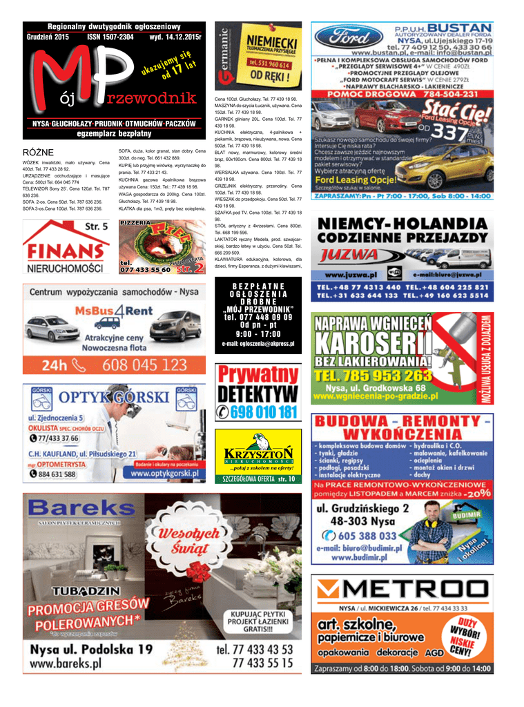 BEZPŁATNE OGŁOSZENIA DROBNE, tel. 77 448 09 09 pn. - pt. od 9.00 - 17.00, [email protected], www.mojprzewodnik.pl