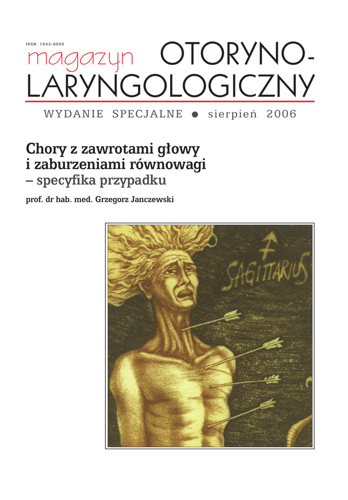 magazyn OTORYNOLARYNGOLOGICZNY ISSN 1643-0050 WYDANIE SPECJALNE ● Chory z zawrotami g∏owy i zaburzeniami równowagi – specyfika przypadku prof. dr hab. med. Grzegorz Janczewski sierpieƒ 2006 Chory z zawrotami g∏owy i zaburzeniami równowagi – specyfika przypadku prof. dr hab. med. Grzegorz Janczewski Niewiele przypadków w praktyce lekarskiej stanowi równie trudne wyzwanie diagnostyczne i terapeutyczne jak zawroty g∏owy i zaburzenia równowagi. Praktyka dowodzi, ˝e najcz´Êciej rozpoznanie ich przyczyny nie jest mo˝liwe podczas pierwszej wizyty chorego. Co wi´cej, u wielu chorych nie mo˝na postawiç rozpoznania mimo d∏u˝szej obserwacji i wielu badaƒ specjalistycznych, tak˝e dlatego, ˝e ich dolegliwoÊci znikajà równie niespodziewanie jak si´ pojawi∏y, czasem samoistnie, bez leczenia. Znakomità ilustracjà tej prawdy jest zdanie wybitnego otoneurologa Kerry’ego, który szczerze wyzna∏: Pomimo kilkunastu lat pracy w dziedzinie ró˝nicowania zawrotów g∏owy sam niejednokrotnie trac´ grunt pod nogami i choç przed dziesi´ciu laty moje rozpoznania by∏y cz´Êciej b∏´dne, to jednak o wiele bardziej w nie wierzy∏em! Czy deklaracja wysokiej klasy specjalisty upowa˝nia nas do tego, aby z góry zak∏adaç, ˝e w swym post´powaniu diagnostycznym i leczniczym jesteÊmy skazani wy∏àcznie na niepowodzenia? p∏ata ciemieniowego. Narzàd przedsionkowy dzieli si´ na cz´Êç obwodowà i cz´Êç oÊrodkowà. Granicà mi´dzy tymi dwiema cz´Êciami jest Êciana pnia mózgu w miejscu wnikania w nià nerwu przedsionkowego. Tak wi´c, do cz´Êci obwodowej zaliczamy: woreczek, ∏agiewk´, trzy kana∏y pó∏koliste, pieƒ nerwu przedsionkowego zawarty w przewodzie s∏uchowym wewn´trznym i kàt mostowo-mó˝d˝kowy. Do cz´Êci oÊrodkowej nale˝à: jàdra przedsionkowe pnia mózgu, po∏àczenia tych jàder z innymi cz´Êciami oÊrodkowego uk∏adu nerwowego oraz pole przedsionkowe w korze mózgu. Kana∏y pó∏koliste sà receptorami wszystkich przyspieszeƒ kàtowych, jakim podlega g∏owa. Fakt, ˝e ka˝dy ruch g∏owy wià˝e si´ z wyzwalaniem przyspieszeƒ kàtowych, przesàdza o tym, ˝e rola tej cz´Êci przedsionka, nazywanej dynamicznà, jest nadzwyczaj istotna. ¸agiewka i woreczek zawierajà narzàdy otolitowe, które odbierajà przyspieszenia liniowe w pionie i poziomie. Najwa˝niejszym bodaj z tych bodêców jest przyspieszenie ziemskie, którego wektor jest skierowany prostopadle do pod∏o˝a, na którym stoimy. Narzàd przedsionkowy odgrywa w ca∏ym uk∏adzie równowagi rol´ bardzo wa˝nà, aczkolwiek, jak si´ wydaje, u cz∏owieka jest ona znacznie mniejsza ni˝ u wielu zwierzàt. Reasumujàc zadania, jakie natura przeznaczy∏a dla przedsionka, mo˝emy si´ pos∏u˝yç stale aktualnym zestawieniem Fishera, który wylicza je jak poni˝ej: 1. Kontrola ruchów zwiàzanych z przyspieszeniami kàtowymi (kana∏y pó∏koliste) i liniowymi (narzàd otolitowy) dzia∏ajàcymi na organizm ludzki. 2. Odbiór bodêców zwiàzanych z dzia∏aniem przyciàgania ziemskiego (grawitacji), b´dàcego przyspieszeniem liniowym, orientujàcym nas w po∏o˝eniu naszego cia∏a w stosunku do powierzchni planety, na której ˝yjemy. Konieczne jest przypomnienie podstawowych wiadomoÊci na temat narzàdu równowagi, chocia˝by w takim zakresie, w jakim przekazuje si´ je na studiach medycznych. Pierwszà prawdà jest to, ˝e równowaga fizyczna cz∏owieka zale˝y mi´dzy innymi od sprawnoÊci narzàdu przedsionkowego, w którego sk∏ad wchodzà: przedsionek zawarty w tylnej cz´Êci ucha wewn´trznego, nerw przedsionkowy, jàdra przedsionkowe w dnie IV komory mózgu oraz szlak wiodàcy a˝ do pola przedsionkowego le˝àcego w dolnej cz´Êci zakr´tu zaÊrodkowego (gyrus postcentralis) Katedra i Klinika Otolaryngologii AM w Warszawie Kierownik: prof. dr hab. med. Kazimierz Niemczyk ul. Banacha 1A, 02-057 Warszawa 3 obwodowego (przedsionka) jest dokonujàcy si´ w cz´Êci oÊrodkowej narzàdu przedsionkowego proces wyrównywania bioelektrycznej aktywnoÊci czynnoÊciowej na poziomie jàder przedsionkowych mózgu i powy˝ej nich. Szybkà reakcjà oÊrodkowej cz´Êci uk∏adu nerwowego na tak nadzwyczajnà sytuacj´ patologicznà jest uruchomienie wyhamowujàcego dzia∏ania mó˝d˝ku (ang. cerebellar clamp). Polega ono na szybkim w czasie sprz´˝eniu zwrotnym od mó˝d˝ku do jàder przedsionkowych pnia mózgu, powodujàcym hamowanie recepcji zaburzeƒ równowagi bioelektrycznej obu systemów przedsionkowych, zw∏aszcza do czasu, kiedy kora mózgu i wy˝sze oÊrodki b´dà mog∏y si´ do tej sytuacji zaadaptowaç. Te wy˝sze oÊrodki wykazujà ogromnà plastycznoÊç w zakresie wydolnoÊci adaptacji do nowej sytuacji, w której b´dà musia∏y wykorzystaç inne uk∏ady zmys∏ów (wzrok, czucie g∏´bokie) w celu przezwyci´˝enia trudnoÊci zwiàzanych z brakiem pe∏nych lub dostarczaniem b∏´dnych informacji z uk∏adu przedsionkowego. Dla optymalnego przebiegu tego procesu niezwykle istotny jest stan oÊrodkowej cz´Êci uk∏adu nerwowego, zw∏aszcza tworu siatkowatego, struktury dolnej oliwki, mó˝d˝ku. Najprawdopodobniej w trakcie tego procesu wytwarzajà si´ nowe po∏àczenia synaptyczne ∏àczàce oba kompleksy jàder przedsionkowych. W czasie post´pu kompensacji uszkodzenia przedsionka niezwykle wa˝na jest rola sprawnych narzàdów wzroku i zmys∏u czucia g∏´bokiego. Jest te˝ oczywiste, ˝e procesy kompensacji nie b´dà ∏atwo ani sprawnie przebiegaç u osób po urazach czy po zapaleniach mózgu, u chorych ze zmianami naczyniowymi (mia˝d˝yca), z nadciÊnieniem t´tniczym itp., czyli przy istnieniu procesów chorobowych, które bezpoÊrednio lub poÊrednio upoÊledzajà czynnoÊç oÊrodkowej cz´Êci uk∏adu nerwowego. 3. Informowanie oÊrodkowego uk∏adu nerwowego o pozycji g∏owy w stosunku do szyi, do reszty cia∏a oraz w stosunku do otaczajàcej nas przestrzeni. 4. Podtrzymywanie napi´cia mi´Êniow