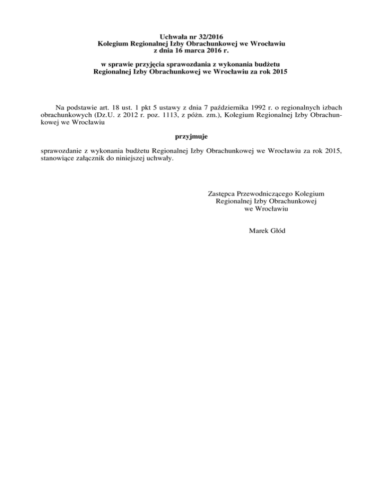 Uchwała nr 32/2016 Kolegium Regionalnej Izby Obrachunkowej we