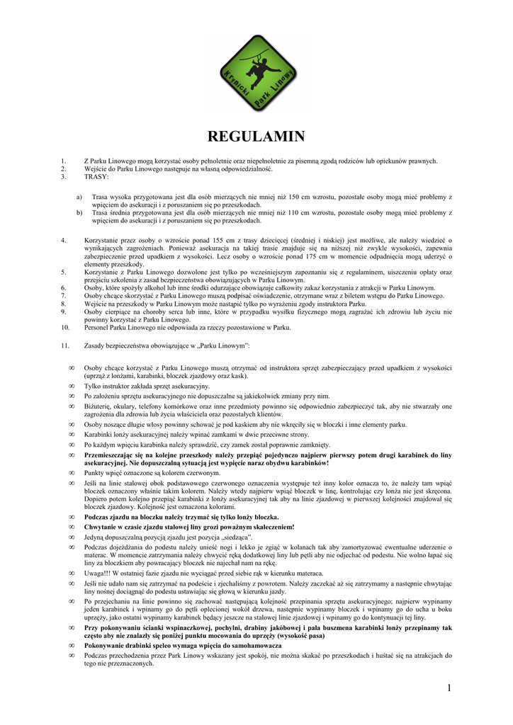 REGULAMIN PARKU KRYNICKI PARK LINOWY