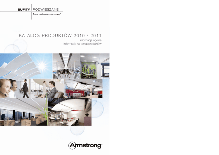 SUFITY PODWIESZANE Jesteśmy do Państwa dyspozycji, aby rozwijać wartościową współpracę! Z nami zrealizujesz swoje pomysły ® K a ta l o g p r o d u K t ó w 2 0 1 0 / 2 0 1 1 Informacje ogólne Informacje na temat produktów Obsługa klienta Współpraca Macie Państwo pytania? My znamy na nie odpowiedzi! Pracownicy biur sprzedaży firmy Armstrong znają dobrze asortyment oraz posiadają wiedzę techniczną pozwalającą skutecznie wyjaśnić wszelkie Państwa wątpliwości. Ponadto, zespół ds. obsługi zamówień służy pomocą i doświadczeniem, by w prosty i szybki sposób przeprowadzić klienta przez proces składania zamówienia. W każdym miejscu na świecie wystarczy jeden telefon, aby skontaktować się z naszym doświadczonym i skoncentrowanym na potrzebach klienta zespołem. Pielęgnowanie relacji z partnerami strategicznymi stanowi skuteczny sposób oferowania klientom obsługi najwyższej jakości. Dzięki partnerstwu z naszymi dystrybutorami, możemy obecnie poszczycić się największą siecią dystrybucji w Europie. Współpracujemy także z renomowanymi wykonawcami w ramach naszego programu OMEGA. DOraDcy techniczni Nieważne, czy jesteś kierownikiem ds. zakupów, wykonawcą czy dystrybutorem do swojej dyspozycji masz doradców ds. projektów firmy Armstrong, których zadaniem jest udzielanie pomocy w sprawie wymogów technicznych, doradztwo w kwestii rysunków wykonawczych i opracowania graficznego projektu oraz udzielenie wsparcia na kolejnych etapach realizacji inwestycji. Zadaniem naszych doradców technicznych jest oferowanie zgodnych z indywidualnymi wymogami klienta rozwiązań pod względem projektowym i technicznym, spełniających Państwa potrzeby w zakresie wzornictwa oraz obsługi przez naszą sieć dystrybucji. narzęDzia Utrzymywanie stałego kontaktu z firmą Armstrong jest niezwykle łatwe! Nie tylko udostępniamy Państwu katalogi, karty techniczne produktów oraz biuletyny, lecz posiadamy także dedykowaną stronę internetową zawierającą specjalne narzędzia pomocne w projektowaniu oraz narzędzia techniczne, takie jak: kalkulatory akustyczne, rysunki CAD, również trójwymiarowe. ODWieDź nas na strOnie WWW! Aby dowiedzieć się jeszcze więcej na temat firmy Armstrong, zapraszamy Państwa do odwiedzenia naszej strony internetowej, gdzie znajdziecie Państwo aktualności i informacje, inspirujące pomysły projektowe, galerię projektów, mini-witrynę poświęconą akustyce, strony dedykowane poszczególnym produktom, pliki dokumentacji do pobrania i wiele więcej! www.armstrong.pl/sufity Program omega Firma Armstrong, poprzez swój program OMEGA, współpracuje ściśle z wyspecjalizowanymi firmami wykonawczymi instalującymi sufity podwieszane. Dzięki temu mamy pewność, że nasze produkty są montowane przez przeszkolonych profesjonalistów. Nasi partnerzy uczestniczący w programie OMEGA podlegają starannemu doborowi w oparciu o szczegółowe kryteria tego programu oraz muszą wypełniać liczne zobowiązania obejmujące m.in.: ścisłe przestrzeganie surowych standardów branży, posiadanie pełnej i aktualnej wiedzy na temat produktów i rekomendacji firmy Armstrong oraz regularnie uzupełniać informacje na temat realizowanych projektów w celu oceny jakości ich wykonania. SUFITY PODWIESZANE Jesteśmy do Państwa dyspozycji, aby rozwijać wartościową współpracę! Z nami zrealizujesz swoje pomysły ® K a ta l o g p r o d u K t ó w 2 0 1 0 / 2 0 1 1 Informacje ogólne Informacje na temat produktów Obsługa klienta Współpraca Macie Państwo pytania? My znamy na nie odpowiedzi! Pracownicy biur sprzedaży firmy Armstrong znają dobrze asortyment oraz posiadają wiedzę techniczną pozwalającą skutecznie wyjaśnić wszelkie Państwa wątpliwości. Ponadto, zespół ds. obsługi zamówień służy pomocą i doświadczeniem, by w prosty i szybki sposób przeprowadzić klienta przez proces składania zamówienia. W każdym miejscu na świecie wystarczy jeden telefon, aby skontaktować się z naszym doświadczonym i skoncentrowanym na potrzebach klienta zespołem. Pielęgnowanie relacji z partnerami strategicznymi stanowi skuteczny sposób oferowania klientom obsługi najwyższej jakości. Dzięki partnerstwu z naszymi dystrybutorami, możemy obecnie poszczycić się największą siecią dystrybucji w Europie. Współpracujemy także z renomowanymi wykonawcami w ramach naszego programu OMEGA. DOraDcy techniczni Nieważne, czy jesteś kierownikiem ds. zakupów, wykonawcą czy dystrybutorem do swojej dyspozycji masz doradców ds. projektów firmy Armstrong, których zadaniem jest udzielanie pomocy w sprawie wymogów technicznych, doradztwo w kwestii rysunków wykonawczych i opracowania graficznego projektu oraz udzielenie wsparcia na kolejnych etapach realizacji inwestycji. Zadaniem naszych doradców technicznych jest oferowanie zgodnych z indywidualnymi wymogami klienta rozwiązań pod względem projektowym i technicznym, spełniających Państwa potrzeby w zakresie wzornictwa oraz obsługi przez naszą sieć dystrybucji. narzęDzia Utrzymywanie stałego kontaktu z firmą Armstrong jest niezwykle łatwe! Nie tylko udostępniamy Państwu katalogi, karty techniczne produktów oraz biuletyny, lecz posiadamy także dedykowaną stronę internetową zawierającą specjalne narzędzia pomocne w projektowaniu oraz narzędzia techniczne, takie jak: kalkulatory akustyczne, rysunki CAD, również trójwymiarowe. ODWieDź nas na strOnie WWW! Aby dowiedzieć się jeszcze więcej na temat firmy Armstrong, zapraszamy Państwa do odwiedzenia naszej strony internetowej, gdzie znajdziecie Państwo aktualności i informacje, inspirujące pomysły projektowe, galerię projektów, mini-witrynę poświęconą akustyce, strony dedykowane poszczególnym produktom, pliki dokumentacji do pobrania i wiele więcej! www.armstrong.pl/sufity Program omega Firma Armstrong, poprzez swój program OMEGA, współpracuje ściśle z wyspecjalizowanymi firmami 