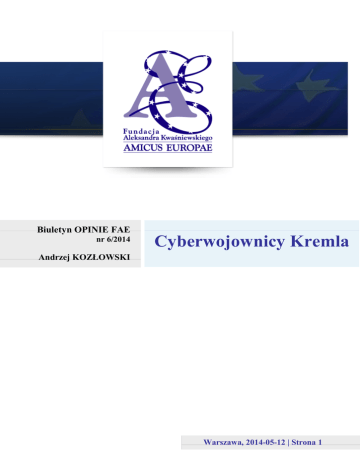 Biuletyn OPINIE FAE nr 6/2014 Cyberwojownicy Kremla Andrzej KOZŁOWSKI Warszawa, 2014-05-12 | Strona 1 Cyberwojownicy Kremla Biuletyn OPINIE FAE nr 6/2014 Andrzej Kozłowski Rosja, jako państwo z imperialnymi ambicjami, dostrzega szanse i zagrożenia związane ze wzrostem znaczenia cyberprzestrzeni dla bezpieczeństwa kraju. Nie ogranicza się tylko i wyłącznie do działań obronnych, często wykorzystując swoich hakerów do ofensywnych akcji wymierzonych w swoich wrogów – tak zewnętrznych, jak i wewnętrznych. Rosyjskie bezpieczeństwo cybernetyczne Gwałtowna informatyzacja całego świata, która nastąpiła na początku lat 90. ub. wieku wraz z upowszechnieniem internetu doprowadziła do sytuacji, w której coraz więcej ludzi, przedsiębiorstw oraz usług rządowych zostało przeniesionych do świata wirtualnego, włączając w to obsługę kluczowych obiektów infrastruktury państwowej. Fakt ten niesie ze sobą implikacje dla bezpieczeństwa państwa, jak też stwarza nowe możliwości prowadzenia działalności o charakterze ofensywnym, nastawionym na wyrządzenie szkód potencjalnemu przeciwnikowi. Rosja nie jest tutaj wyjątkiem. Wprawdzie jej instytucjonalne struktury działalności w cyberprzestrzeni nie są tak rozwinięte, jak np. w Stanach Zjednoczonych, to jednak FR jest jednym z państw, których zdolności przeprowadzenia cyberataków są w powszechnej opinii uważane za największe. Rosja jest postrzegana przez ekspertów jako członek tzw. „cybernetycznej triady”, wespół z Chinami i Stanami Zjednoczonymi. To właśnie te kraje dyktują zasady w cyberprzestrzeni. Przy czym Pekin i Moskwa kładą większy nacisk na działania ofensywne, wymierzone w szczególności w Waszyngton. Rosjanie, co ciekawe nie traktują cyberprzestrzeni jako oddzielnego strategicznego teatru działań wojennych – obok powietrza, morza, lądu czy przestrzeni kosmicznej. Zamiast słowa „cyberprzestrzeń” używają sformułowania „przestrzeń informacyjna”. Dla Rosji jej cyber zdolności są nowym narzędziem dla działań w ramach wojny informacyjnej (wywiadu, kontrwywiadu, dezinformacji, propagandy), wojny elektronicznej, zakłócania komunikacji i nawigacji, wywierania presji psychologicznej oraz niszczenia zasobów informatycznych przeciwnika. Rosjanie nie posiadają osobnego dowództwa na kształt amerykańskiego Cyber Command, chociaż planują powołanie takiego ośrodka w najbliższej przyszłości. Ich doktryna opiera się na trzech głównych dokumentach: „Doktrynie bezpieczeństwa informacyjnego” z 2000 roku, konwencji „O międzynarodowym bezpieczeństwie informacyjnym” oraz „Kompleksowym spojrzeniu na aktywność sił zbrojnych Federacji Rosyjskiej w przestrzeni informacyjnej” z 2011 roku. Pierwsza z nich definiuje interes narodowy Rosji w sferze informacji, mówi o zagrożeniach i szansach, które towarzyszą rozwojowi technologicznemu. Druga jest szeregiem rosyjskich propozycji odnośnie Warszawa, 2014-05-12 | Strona 2 Cyberwojownicy Kremla Biuletyn OPINIE FAE nr 6/2014 Andrzej Kozłowski kontroli sfery informacyjnej, wliczając w to takie kontrowersyjne pomysły jak możliwość odcięcia społeczeństwa od internetu. Dokument przygotowany przez Ministerstwo Obrony liczy zaledwie kilka stron i w dużej mierze jest kopią rozwiązań zawartych w strategii Stanów Zjednoczonych. Skupia się na trzech głównych punktach: monitorowaniu cyberprzestrzeni w celu zlokalizowania zagrożenia, przeciwdziałaniu jego rozprzestrzenianiu, a następnie jego eliminacji. Rosjanie roszczą sobie też prawo do konwencjonalnej odpowiedzi w przypadku zmasowanego ataku w cyberprzestrzeni, jednak nie jest to innowacyjna koncepcja, została wprowadzona już wcześniej przez Amerykanów. Na pierwszy rzut oka zaskakujący jest brak jakiejkolwiek wzmianki o akcjach ofensywnych przeprowadzanych w cyberprzestrzeni. Jednakże za taką działalność odpowiedzialni są hakerzy powiązani z Federalną Służbą Bezpieczeństwa, a dokument został przygotowany przez Ministerstwo Obrony i dotyka spraw istotnych dla wojska. Rosyjscy „cyberkozacy” Rosyjscy hakerzy mają bardzo długą tradycję działalności w cyberprzestrzeni. Pierwszy akt cyberszpiegostwa został dokonany właśnie przez nich, kiedy w 1989 roku wykradli z sieci tajne dane Departamentu Stanu i amerykańskich firm, które sprzedali później KGB. Cechą specyficzną rosyjskiej społeczności internetowej jest istnienie dużej ilości grup niezależnych hakerów o patriotycznym nastawieniu, którzy od czasu do czasu współpracują z rządem. Działania większości z nich są prymitywne i ograniczają się do najprostszych ataków, jednakże zdarzają się też jednostki, które obrosły legendą w środowisku hakerskim, jak „Haker Piekło”, który podejrzewany jest o kradzież wielu danych opozycji, czy też haker o pseudonimie SEVERA, który nazywany jest królem spamu. Z pewnością większość ich działań wspierana oraz koordynowana jest przez rosyjskie władze. Inną wyróżniającą cechą jest mnogość forów internetowych, gdzie początkujący hakerzy mogą znaleźć informacje oraz potrzebne programy do przeprowadzenia ataków w cyberprzestrzeni. Platformy te służą one również do koordynowana większych ataków. Hakerzy w walce wewnętrznej Od początku lat 90. i upowszechnienia się internetu w Rosji, dominuje w tym kraju podejście centralistyczne, polegające na poszerzaniu i pogłębianiu kontroli nad zasobami sieci. Federalna Służba Bezpieczeństwa (FSB) monitoruje pocztę elektroniczną i inne formy komunikacji przez program SORM. Zdaniem przedstawicieli tej służby pomaga to w przeciwdziałaniu terroryzmowi oraz umożliwia wykrywanie agentów obcych wywiadów. Mało kto wierzy w oficjalne komunikaty Warszawa, 2014-05-12 | Strona 3 Cyberwojownicy Kremla Biuletyn OPINIE FAE nr 6/2014 Andrzej Kozłowski przedstawicieli tej organizacji podejrzewając, że w ten sposób obserwowana 