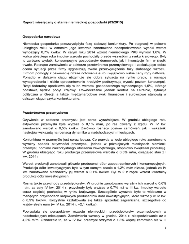 1 Raport miesięczny o stanie niemieckiej gospodarki (03/2015