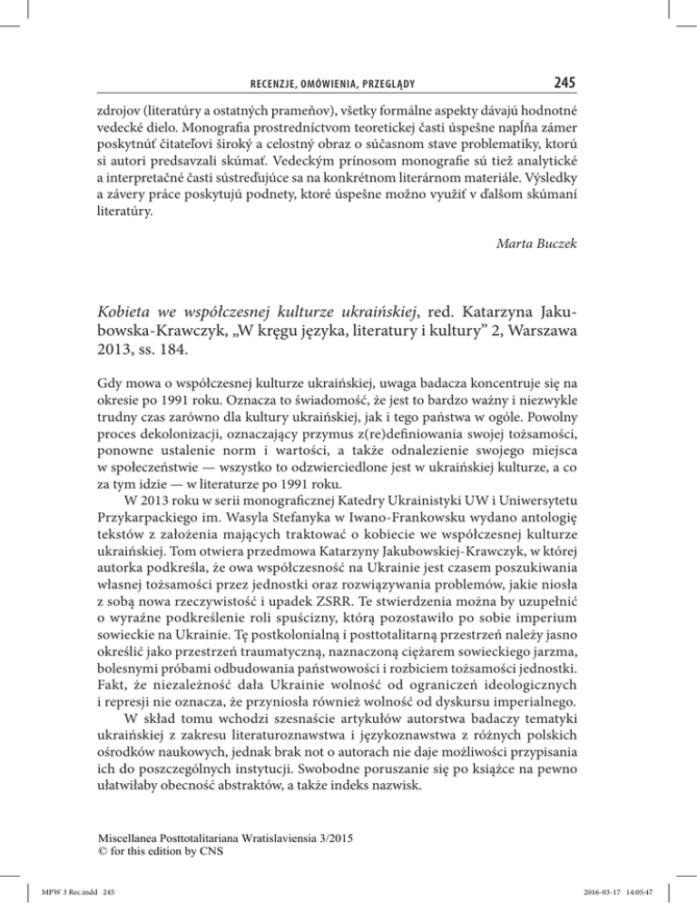 245 Kobieta we współczesnej kulturze ukraińskiej, red. Katarzyna