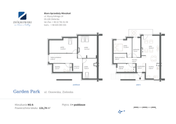 Mieszkanie M2 A Powierzchnia lokalu: 131,74 m2 Piętro: I + poddasze