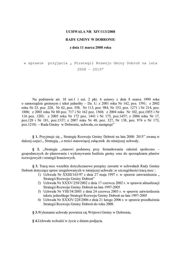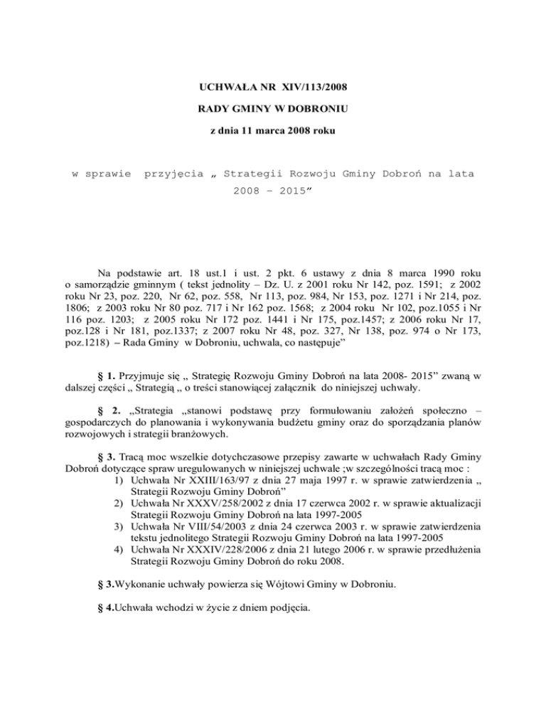 strategia rozwoju gminy dobroń na lata 2008-2015