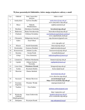 Wykaz pozostałych Oddziałów, które mają związkowe adresy e-mail