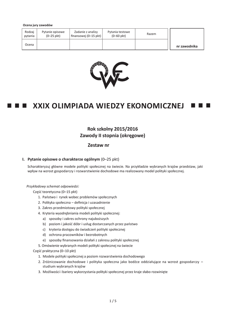 Pobierz klucz z odpowiedziami - Olimpiada Wiedzy Ekonomicznej