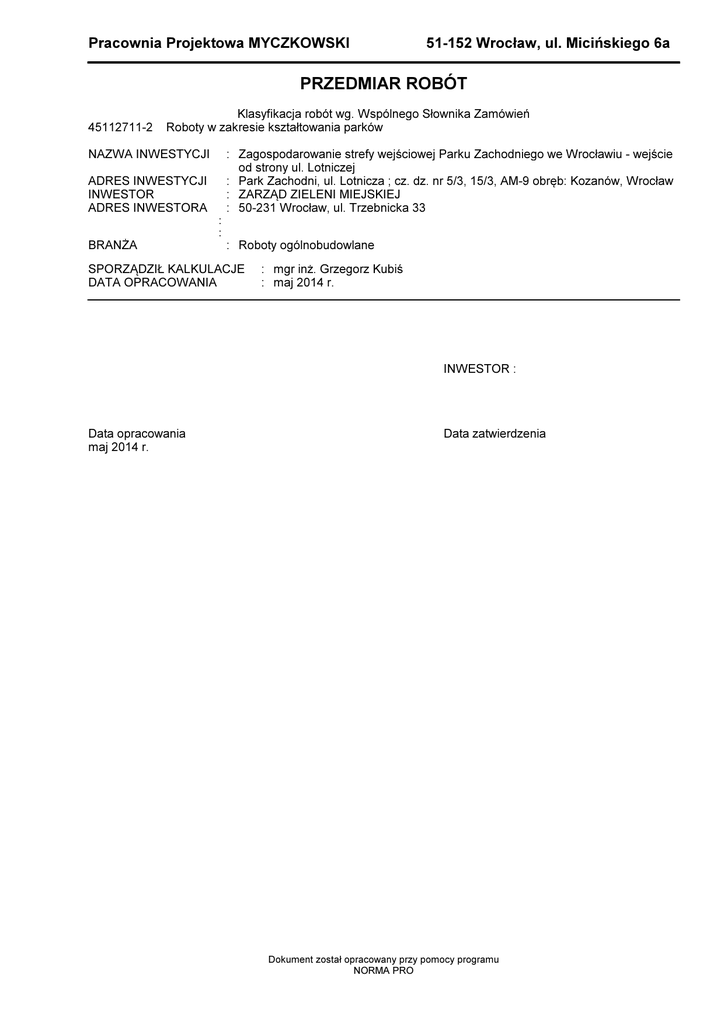 przedmiar robót - Zarząd Zieleni Miejskiej we Wrocławiu