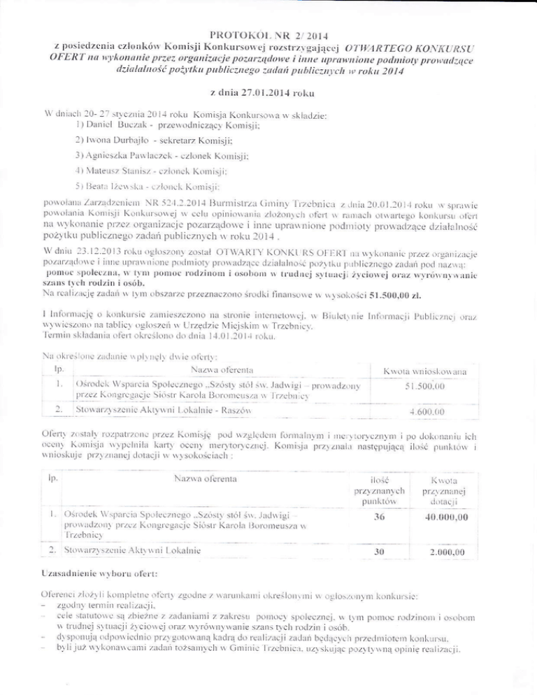 llniona i naz§,iski c,.lonkół Kolnisji Konkurso.§,ej l. Dllnicl Buczak