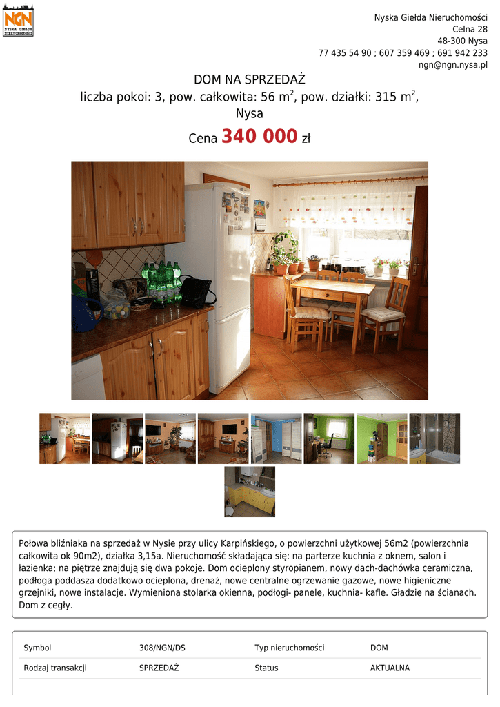 Cena 340 000 zł - Nyska Giełda Nieruchomości