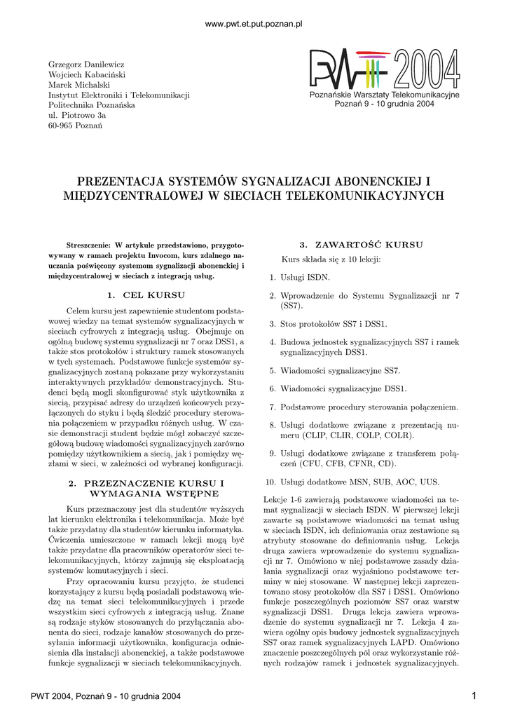 Poznańskie Warsztaty Telekomunikacyjne PWT2004