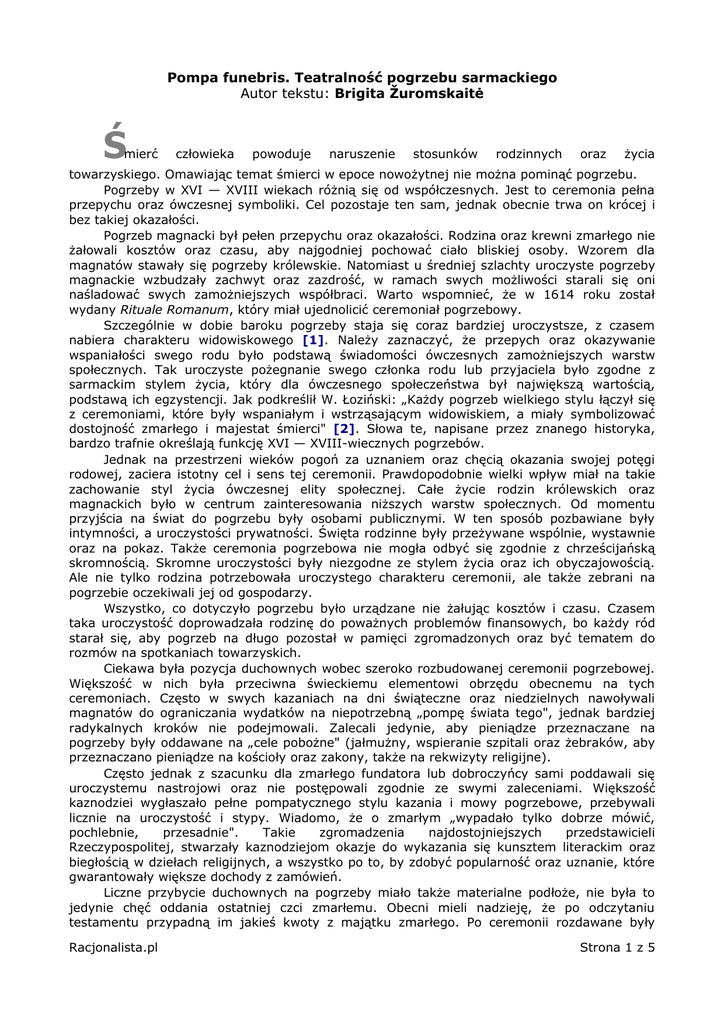 dostojność zmarłego i majestat śmierci" [2]. Słowa te, napisane przez znanego historyka,