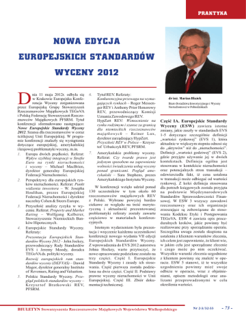 NOWA EDYCJA EUROPEJSKICH STANDARDÓW WYCENY 2012