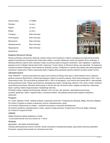 Bułgaria-Słoneczny Brzeg Zakwaterowanie Program: UWAGI Atrakcje: