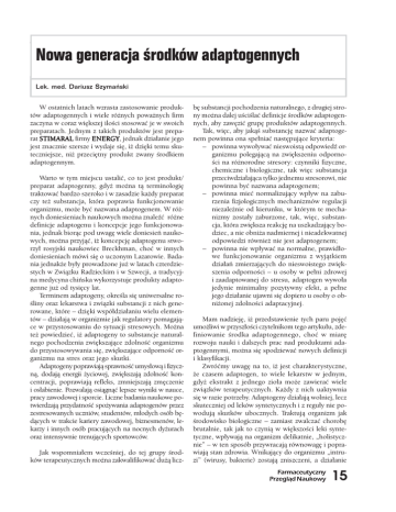 Dariusz Szyma ski Nowa generacja rodk w adaptogennych