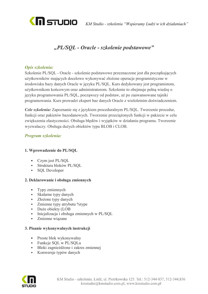 PL/SQL - Oracle - szkolenie podstawowe - KM Studio