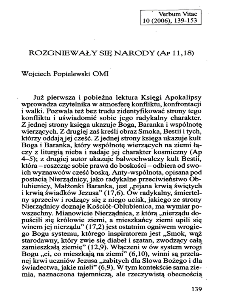 (Ap 19,13), Verbum Vitae 7(2005), 167-184.