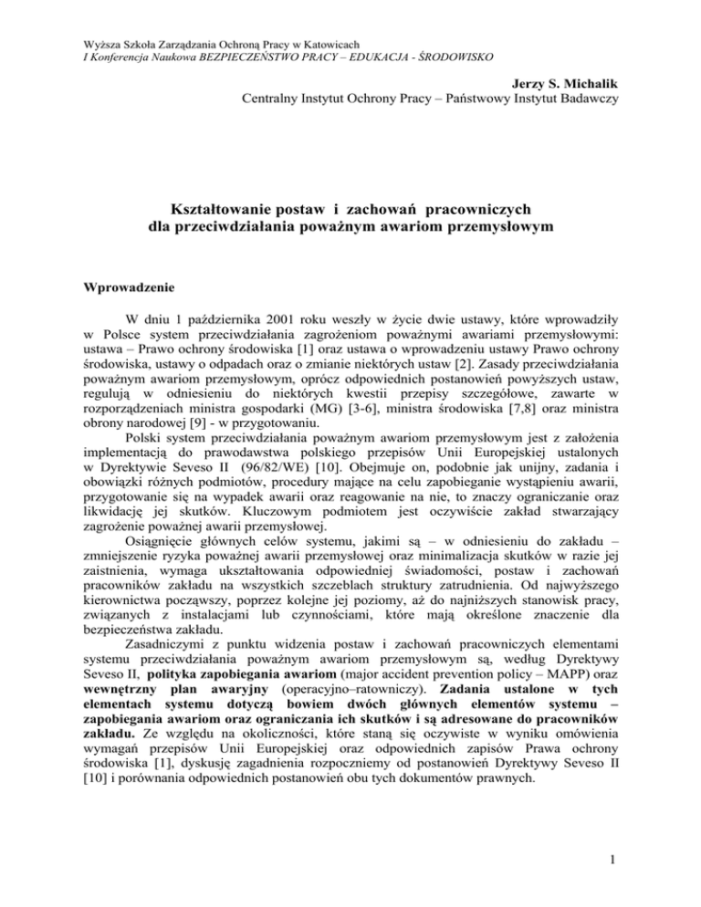 odpowiedniego wdrożenia tej polityki. Polityka zapobiegania poważnym awariom