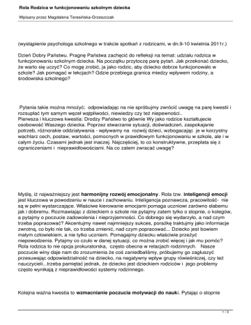 Kliknij tutaj by pobrać Rola rodzica w funkcjonowaniu szkolnym