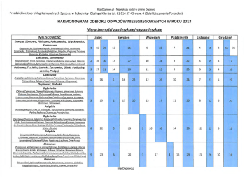 W przypadku awarii sprzętu lub innych zdarzeń wywóz odpadów nastąpi w dniu następnym, po dniu przewidywanym w harmonogramie.