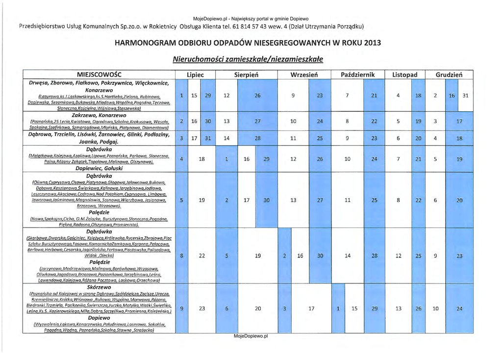 Śmieci Gmina Dopiewo - harmonogram od lipca 2013 r.