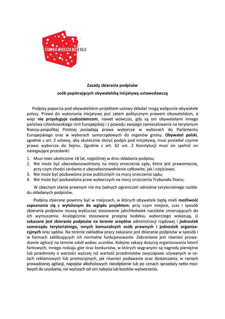 Zasady zbierania podpisów