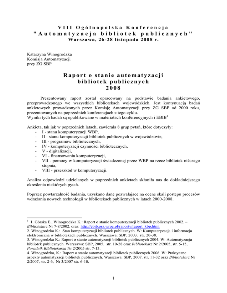 Raport o stanie automatyzacji bibliotek publicznych 2008