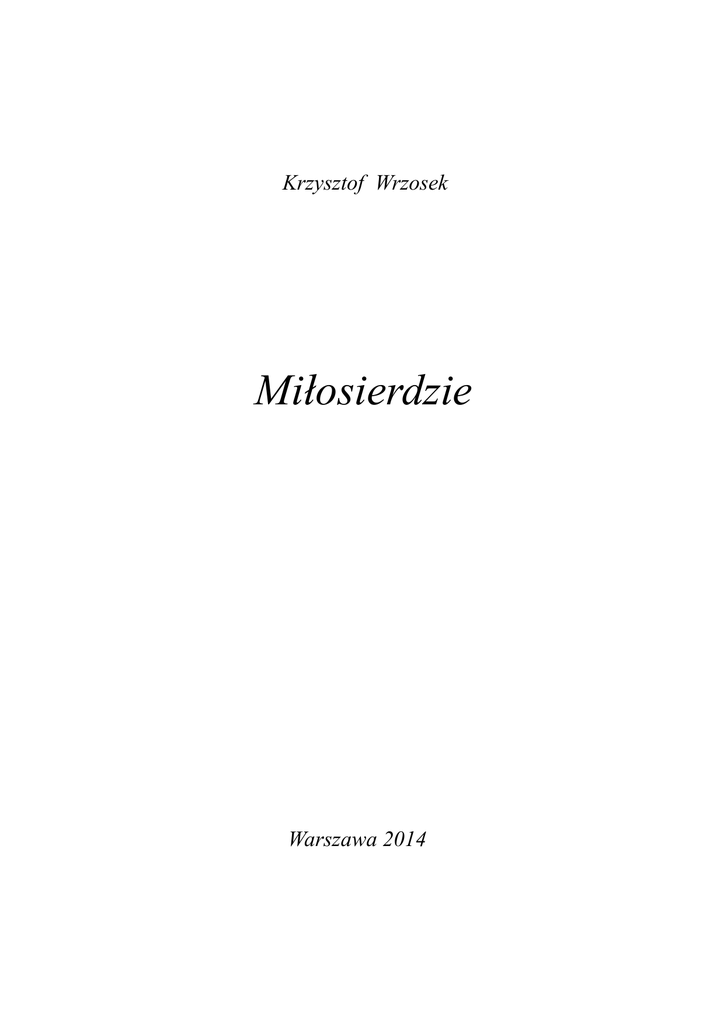 Krzysztof Wrzosek Miłosierdzie Warszawa 2014 Copyright by Krzysztof Wrzosek Okładka: według projektu autora Wydanie pierwsze Warszawa 2014 Miłosierdzie Jakże wielkie jest Panie miłosierdzie Twoje Obracające w niwecz ludzkie niepokoje, Potrafiące wybaczać najpodlejsze grzechy, W tym te popełnione dla pustej uciechy, Która tylko nielicznym dana jest za życia Niczym studnia w pustyni bez wody do picia. Mówię Panie o władzy jednostki nad ludem, Władzy krwią okupionej i zdobytej z trudem Wieloletnim wysiłkiem popartym czynami Łącznie ze zdradą stanu z innymi łotrami. "Liczmy głosy panowie" - oto motto łotra W cyrografie spisane przez szatana - kmotra, Który życiem grzesznika zarządzał za młodu Znajdując w nim szatana już w postaci płodu. W jego genom spojrzawszy ucieszył się szatan Wszak dziadek niegodziwca z Wermachtem jest zbratan Genetycznie więc jest to materiał wspaniały, Gdy dorośnie łotr będzie z niego doskonały. 3 Poił go szatan wódą, dał palić "marychę" I wpajał w tą kanalię dumę oraz pychę, Która w wieku późniejszym - jeśli plan się uda Z durnowatego gnojka zrobi Belzebuba. Mogłeś Dobry Boże już na tym etapie Diabłu prowadzącemu przyłożyć po łapie I kroki gnojka skierować pod pociąg na szyny, Czemuś tego nie zrobił mój Boże jedyny??? Łatwo oddałeś Panie pole w walce z diabłem Jednak mnie się wydaje - powiedz jeśli zgadłem Żeś specjalnie nam diabła dał za przewodnika Jako karę za grzechy - tak z faktów wynika. Przeto teraz my mali, skarleli i głupi Winy nasze na zawsze pragniemy odkupić Do Ciebie, więc teraz zanosim orędzie; Zabierz nam Belzebuba - okaż miłosierdzie. 13.08.2014 4 Pożegnanie Lotniska Cóż znaczy "żegnaj" wobec tego czasu, Który mi jeszcze Bóg przeznaczył z wami To krótkie "żegnaj", tak jak płaszcz z atłasu, Zabrzmi po stokroć miękkimi zgłoskami. Wszak nie żegnamy teraz się na wieki Po tym ćwierćwieczu razem tu spędzonym Lecz wiele razy, przymknąwszy powieki, Wrócimy myślą ku czasom minionym. Niechaj się smutek nie ściele na twarzach Jako mgła biała, która o świtaniu Welonem z rosy na łąki ołtarzach Maluje obraz z marzeń o lataniu. My, to co nasze, już przelecieliśmy, Dedal i Ikar świadkami nam byli I chociaż często także błądziliśmy To dotrwaliśmy do dzisiejszej chwili. 5 I w niej to właśnie pióra Ikarowe W sprawniejsze, młodsze oddajemy ręce Puchary wznosząc wysoko nad głowę Za te ćwierć wieku wypijmy w podzięce. 2.06.2014 Lotnisko Okęcie. Mario Mario, klęcząc przed Tobą skraj sukni całuję I w głąb Twych oczu patrząc wyznaję Ci szczerze, Że za miłość do Polski ja Ciebie miłuję I do Boga słać będę za Ciebie pacierze. Tyś jest moją Grażyną i Emilią Plater Mądra, dzielna, wspaniała chociaż bardzo młoda W moich myślach Ty jesteś Kobieta-bohater Czysta, piękna i dobra jak źródlana woda. 6 Bije serce me stare z tej wielkiej uciechy Żeś kanalii bez trwogi prawdę wypaliła Wymieniając największe tego drania grzechy O nagości królewskiej prawdę ogłosiła. Przyjąć zechciej w podzięce od starca te słowa Choć niezgrabne to z serca pisane szczerego Dla Ojczyzny Marysiu bądź zawsze gotowa Oddać wszystko bez żalu do tchu ostatniego. 3.06.2014 Instrukcja dla męża Wstawaj mężu drogi przyleciał Obama pora go przywitać by nie wyjść na chama I proszę byś głupot nie chrzanił mój drogi A przy powitaniu obłapił za nogi I schyliwszy się nisko buty ucałował Przy Obamie byś pleców całkiem nie prostował Lecz jak przed Kremla panem pozostał w pół zgięty Aby ci nie zarzucił żeś bufon nadęty Pamiętaj jednak w tym zgięciu by osłaniać tyły Żeby cię Włodek nie puknął mój ty mężu miły I żebyś znowu nie wyszedł wprost na idiotę Kolejne instrukcje przekażę ci potem. 3.06.2014 7 Pendolino Rządzące Polską tuzy, by chronić kark przed liną Zajęły szybko miejsca w stojącym Pendolino. Za sterem Szczynukowicz ze swą ubecką żoną Wraz z nimi pięć pacholąt żydowskich usadzono. Tuż za lokomotywą premier z całą rodziną Siedzi naburmuszony ze smutną, głupią miną. Martwi się biedaczysko, że z braku pojemników Nie mógł zabrać ze sobą wszystkich Amber-Goldzików. W kolejnym składzie siedzą wielkie, sejmowe tuzy. Na składzie jest tabliczka;"Tutaj siedzą łobuzy": Kopaczka, która ziemię na metr przekopywała I ustaw przepychacze robiący naród w wała Każąc im tyrać długo, aż do usranej śmierci Pracy nie dając żadnej ani połowy ni ćwierci. Za łobuzami ministry-spece od wszystkiego Zasiedli sobie rzędem jeden obok drugiego. Ten zna się na zegarkach, ta na budowie stadionów Inna na tatuażach dzierganych dla fasonu. Największą ich zaletą zdobytą przez pomyłkę Jest umiejętność grania z "panem" premierem w piłkę. Teraz do Pendolino dołączą Port Lotniczy Tak oto polski robol dał się odprawić z niczym. ......szkoda słów. 16.05.2014 8 Uciszmy Uciszmy polityczną wrzawę I maszerujmy na Warszawę Politycznego dobić trupa Który z narodu robi głupa Złóżmy w podzięce tej elicie Hołd za zmarnowane życie Za poniżanie oraz kpiny Żeśmy są bydłem z naszej winy A kiedy łeb urwiemy hydrze Naszej wolności nikt nie wydrze Gdyż u wolności naszej progu My ją ofiarujemy Bogu. 16.06.2014 9 Piszę do was prozą Nie będzie dzisiaj wersów wzniosłych Patriotycznych och i ach – ów Dziś będzie proza ze słów prostych Którą kieruję do bydlaków. Rządzące kurwy szumowiny I poplecznicy prostytutek Zwymiotowane rzygowiny Co zamiast twarzy macie dupę I ty motłochu co im sprzyjasz Chociaż niewielu was zostało Od wodzów dostaniecie w ryja Prosząc by mocno nie bolało Życzę wam wy sprzedajne szmaty W śmierci godzinie niezbadanej Byście nim wyślą was w zaświaty Spoczęli w trumnie obesranej. I chociaż "człowiek" to brzmi dumnie Za wasze czyny drodzy "bracia" Życzę byście się zesrali w trumnie I